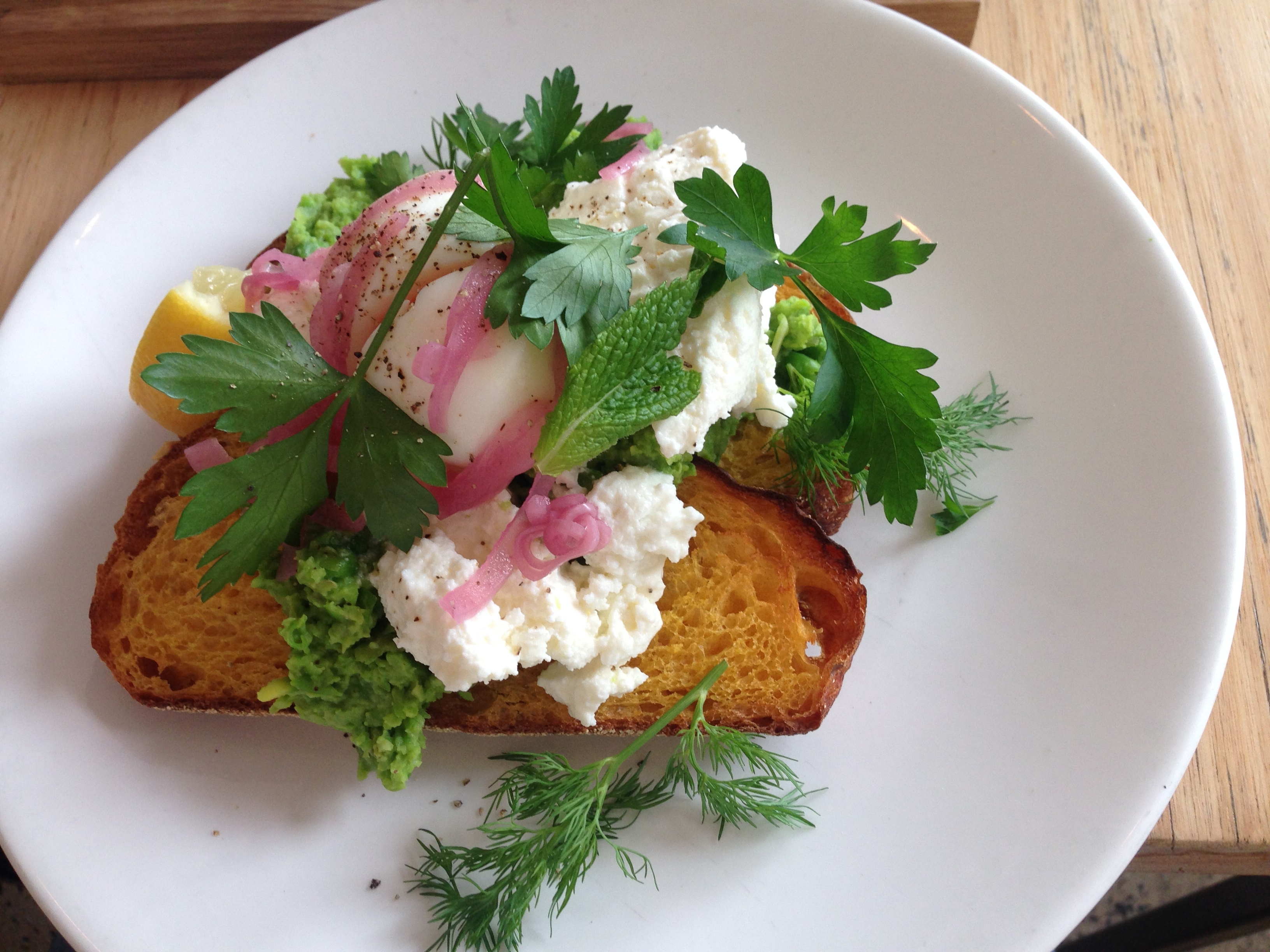 Catherine had the smashed peas and broad beans with ricotta on pumpkin bread. This is a breakfast classic and one of Catherine’s favourite dishes full stop.
