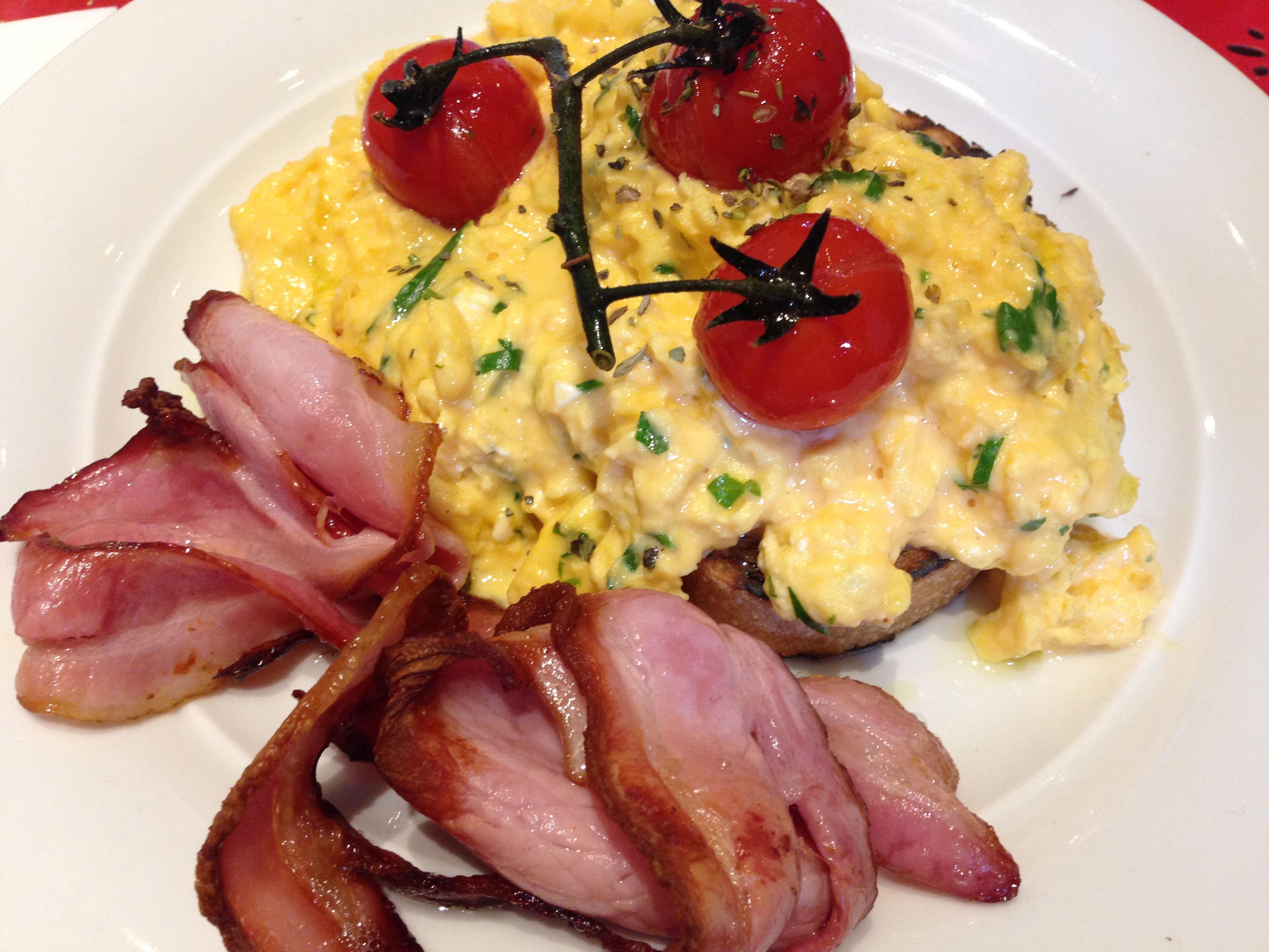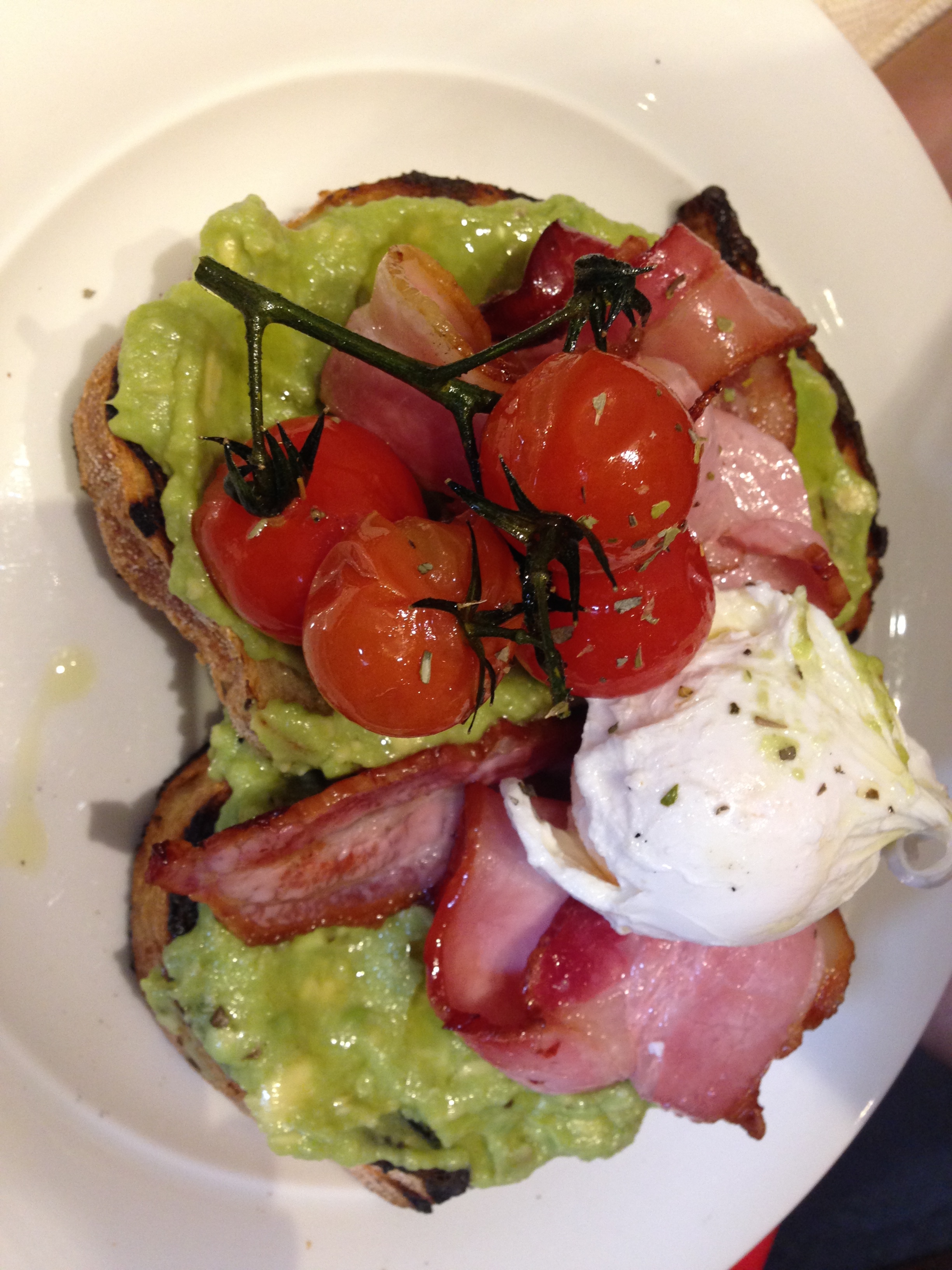 I order the scrambled eggs which have feta mixed through adding even more fluffiness. The sourdough toast is delicious, as is the bacon. Catherine goes for the smashed avocado, which comes with bacon, a poached egg, and those gorgeous confit cherry tomatoes. Both dishes are fantastic classic Melbourne breakfasts with that extra touch you expect from the top cafes.