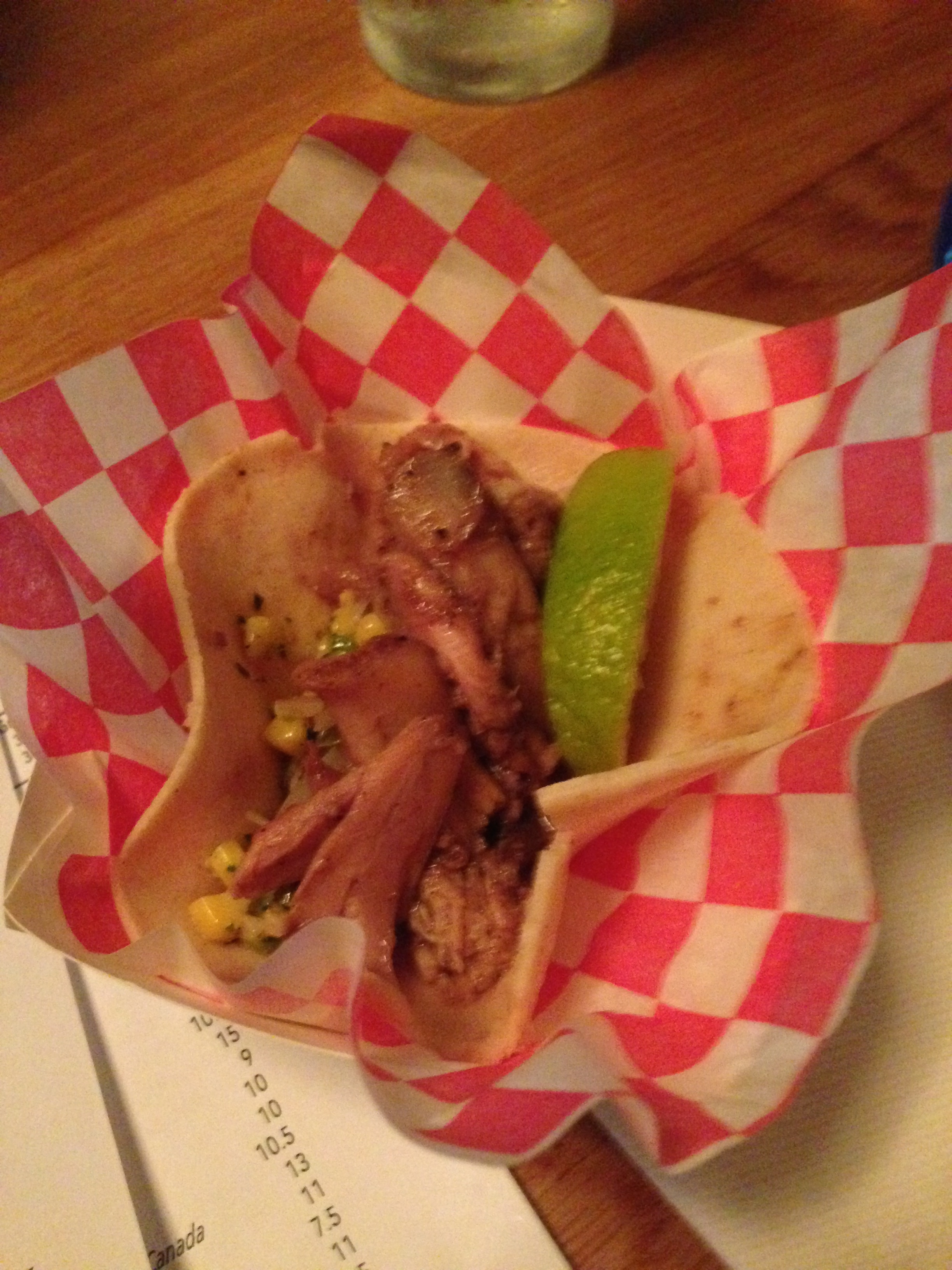Next came the pulled pork sliders which are a better size. The pulled pork is tasty, but no more or less than most good cafes, but the brioche bun stars along with a good helping of chipotle tasting sauce. Last I tried the beef tongue ruben bao. The execution here of the bao makes it easy to tell that steamed buns are not the focus of the chefs. The beef tongue is excellent, but the bao needs improvement.