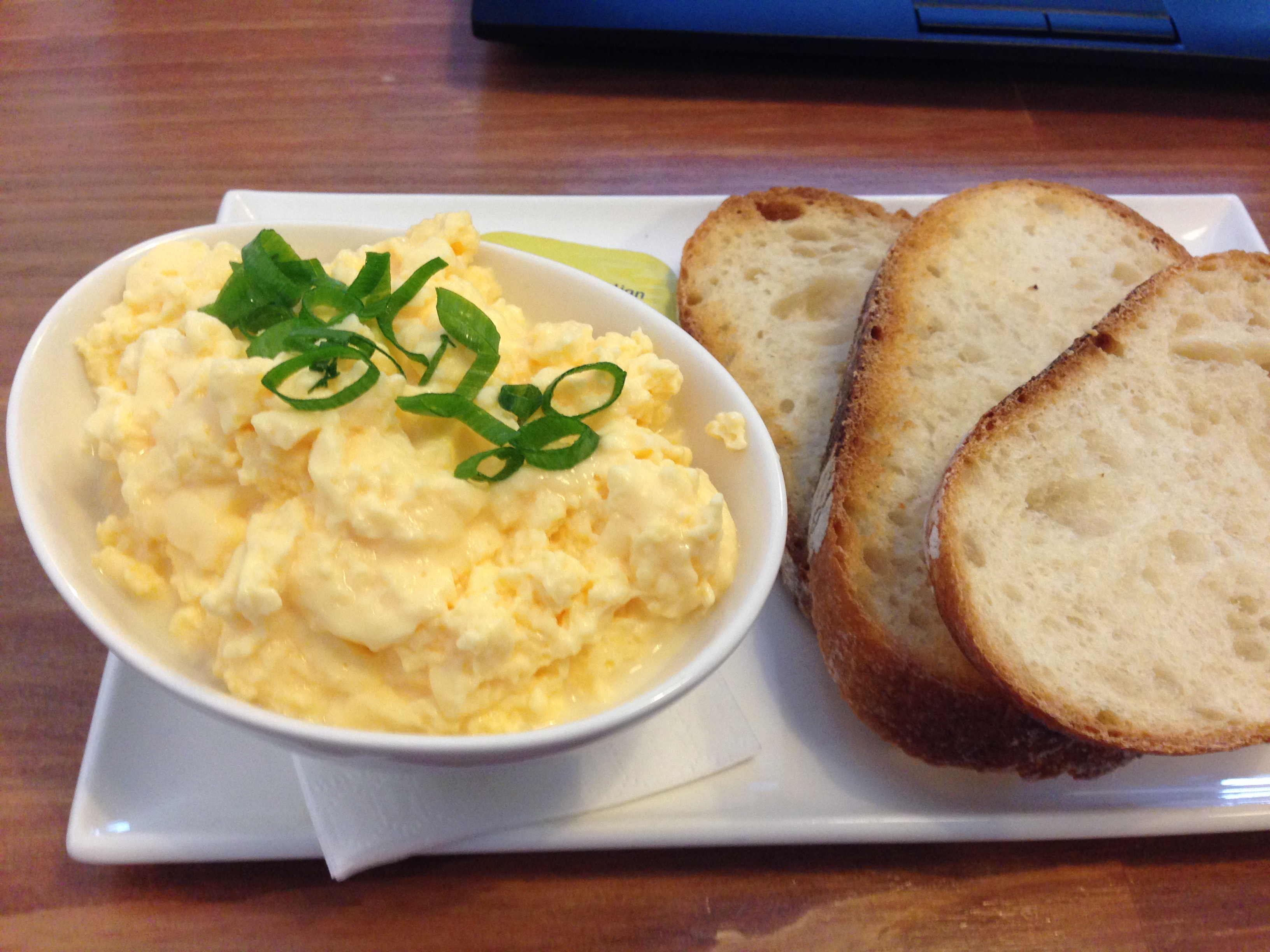 I’m pleased to say that my scrambled eggs and toast arrived at 7.50am which is a credit to the staff for breaking the rule. Unfortunately in this coffee temple, the food in this case took a backseat. The toast is not buttered (a pet gripe), but worse than that, with the scrambled eggs presented in a side bowl, there was a watery residue surrounding them in the bowl that may have escaped had they been presented normally. The presentation was not bettered by the taste and even with the addition of a lot of salt and pepper, I just couldn’t finish. It was like eating scrambled eggs out of a buffet bain marie.