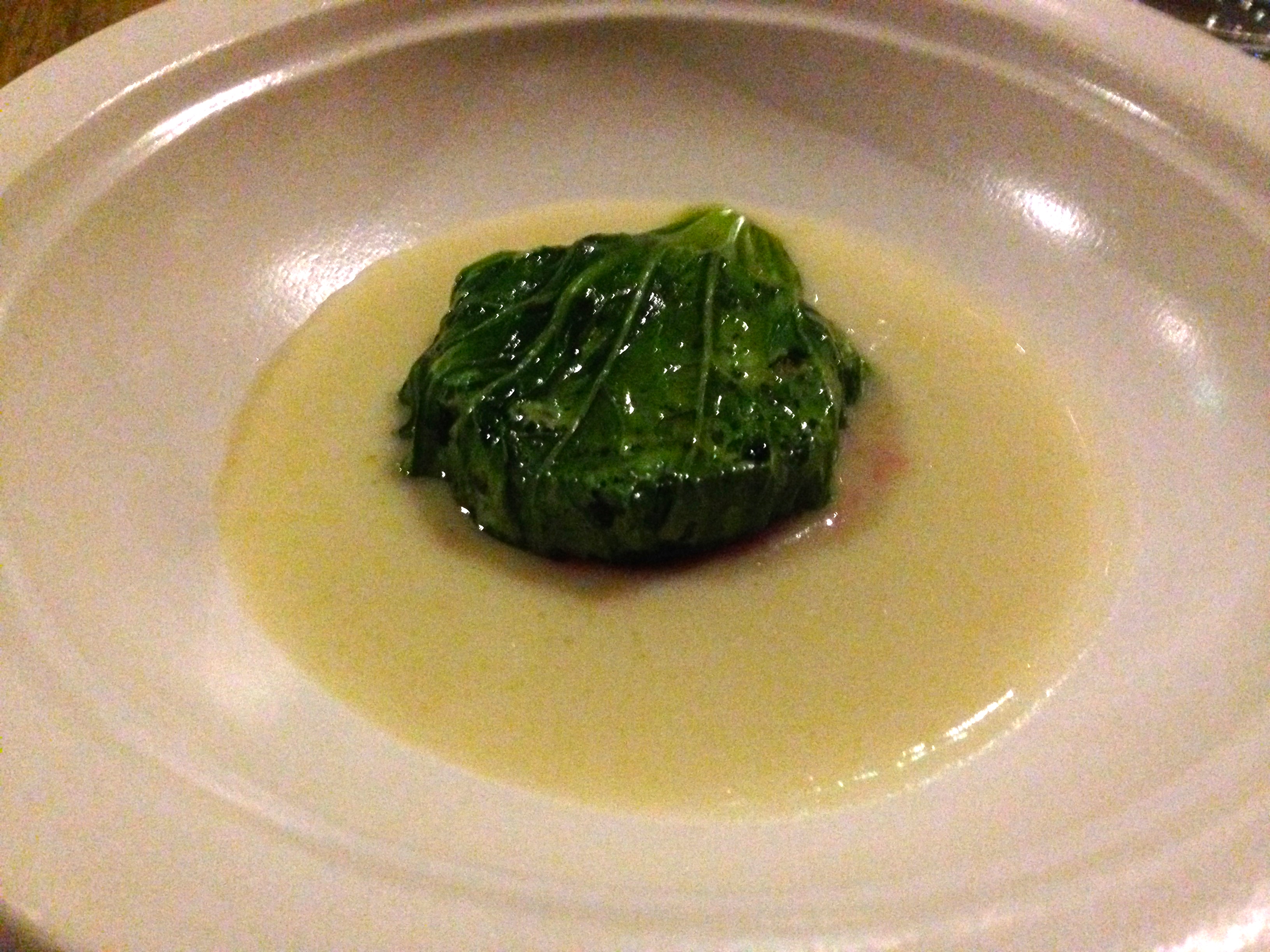 The next dish of a mustard leaf covered disk of beetroot, sitting in whey, tasted so incredible I couldn’t see it being surpassed. This seemingly vegetarian dish is enhanced by the use of duck fat when cooking the beetroot which is absolutely sublime. The firm texture perfectly contrasts with the soft whey sauce, which again highlights the skill of the chefs with sauces and purees.