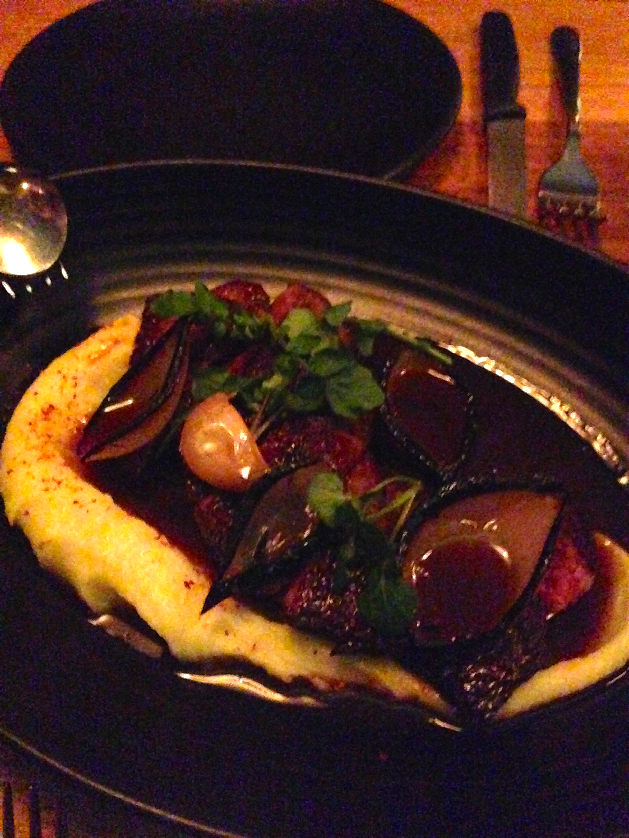 Next we are served a variety of baby beets with sheep’s milk curd, and particularly delicious candied pecans. I am waiting to become sick of beetroot dishes and have decided they are so simply incredible (subject to produce) that they are less of a fad, and more of a genuine modern classic. We also get served a nicely grilled snapper dish.