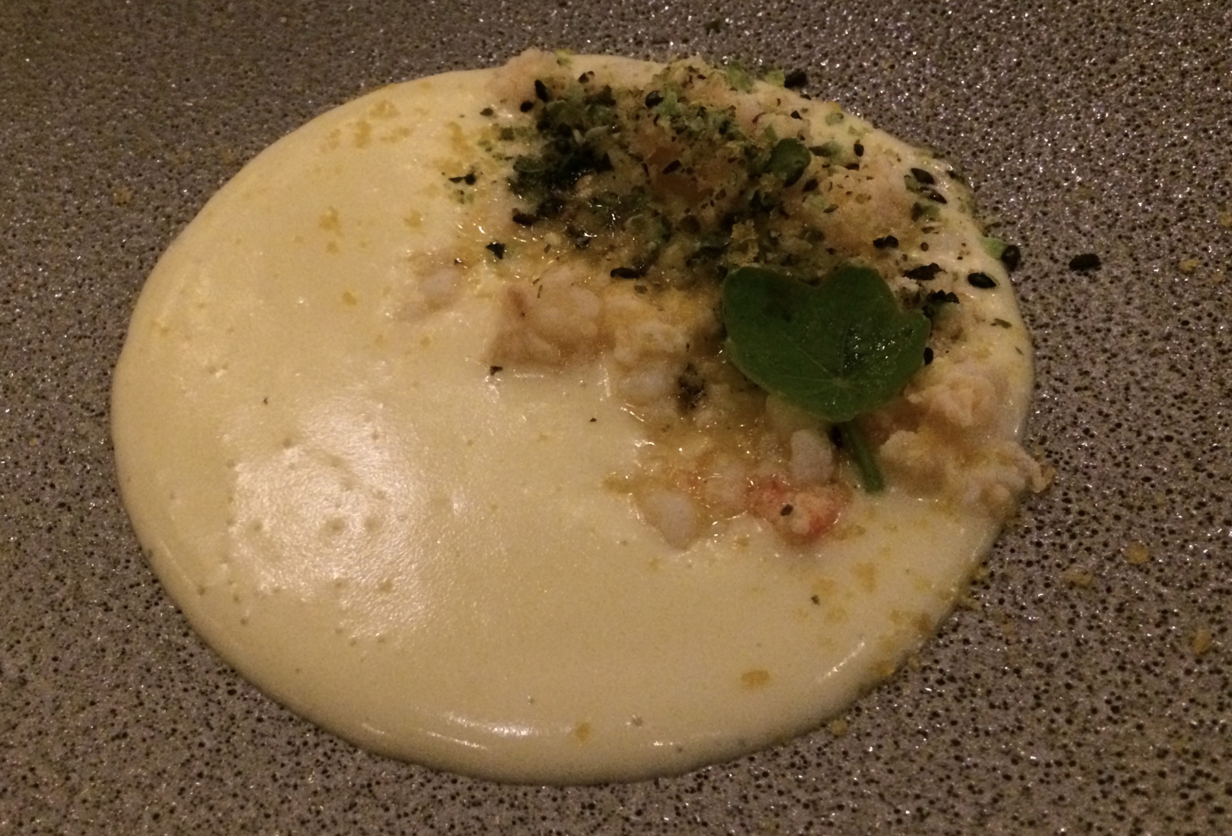 Then came one of the highlights of the night. A generous serving of spanner crab sitting in a potato puree. Bottarga adds to the depth of flavour, with furikake used as a seasoning to further enhance the dish. We were enjoying the 2015 Robert Weil ‘Trocken’ Riesling which had been selected by the sommelier for the first few courses, but especially for this one. I would quite happily return to Doot Doot Doot just for this dish, and this wine.