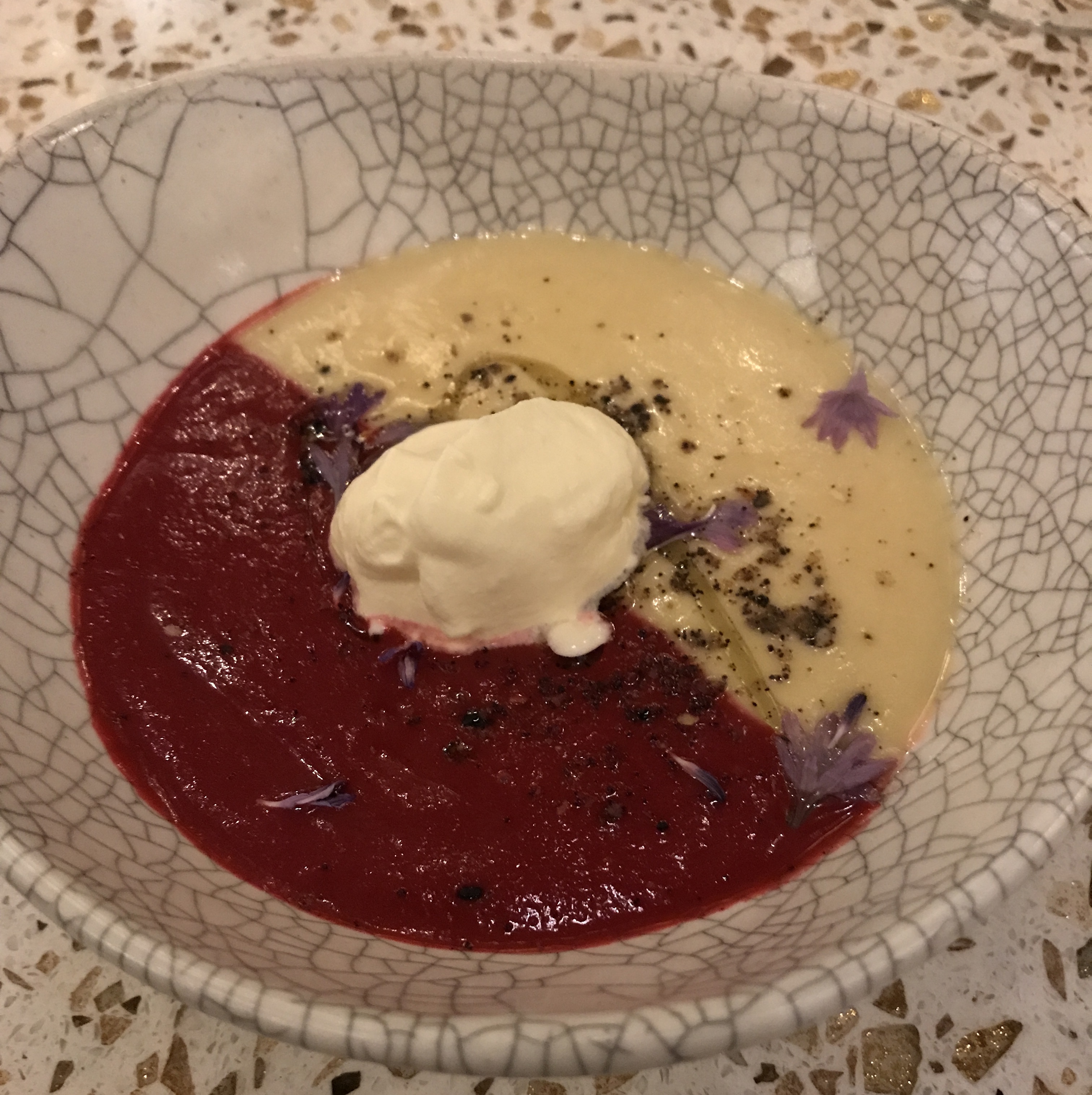 Not reaching the heights of the spanner crab, the beetroot soups were still an attractive and tasty dish. One side was yellow beetroot, infused with saffron, and the other was the more traditional kind. In the middle sat a hay infused cream. I think it may have acted as a cleanser between dishes, but was probably a touch too large.