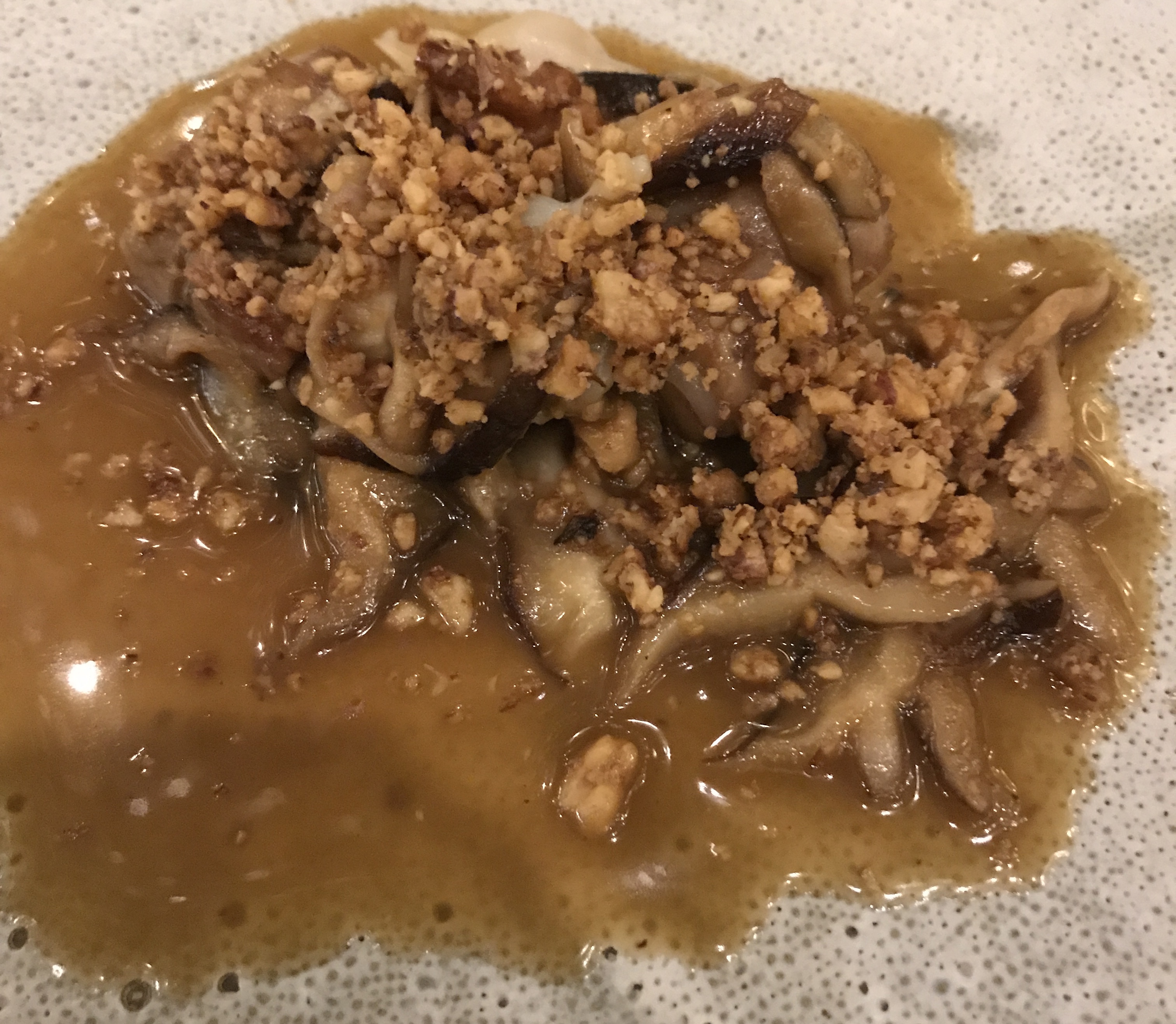 Tuna quickly seared but over a high temperature hit our table next. It was served simply with some Japanese salt plums (Umeboshi), olives, and mushrooms. By this stage the skill of the kitchen was obvious, and the Japanese slant of the hotel intricately applied to the food.