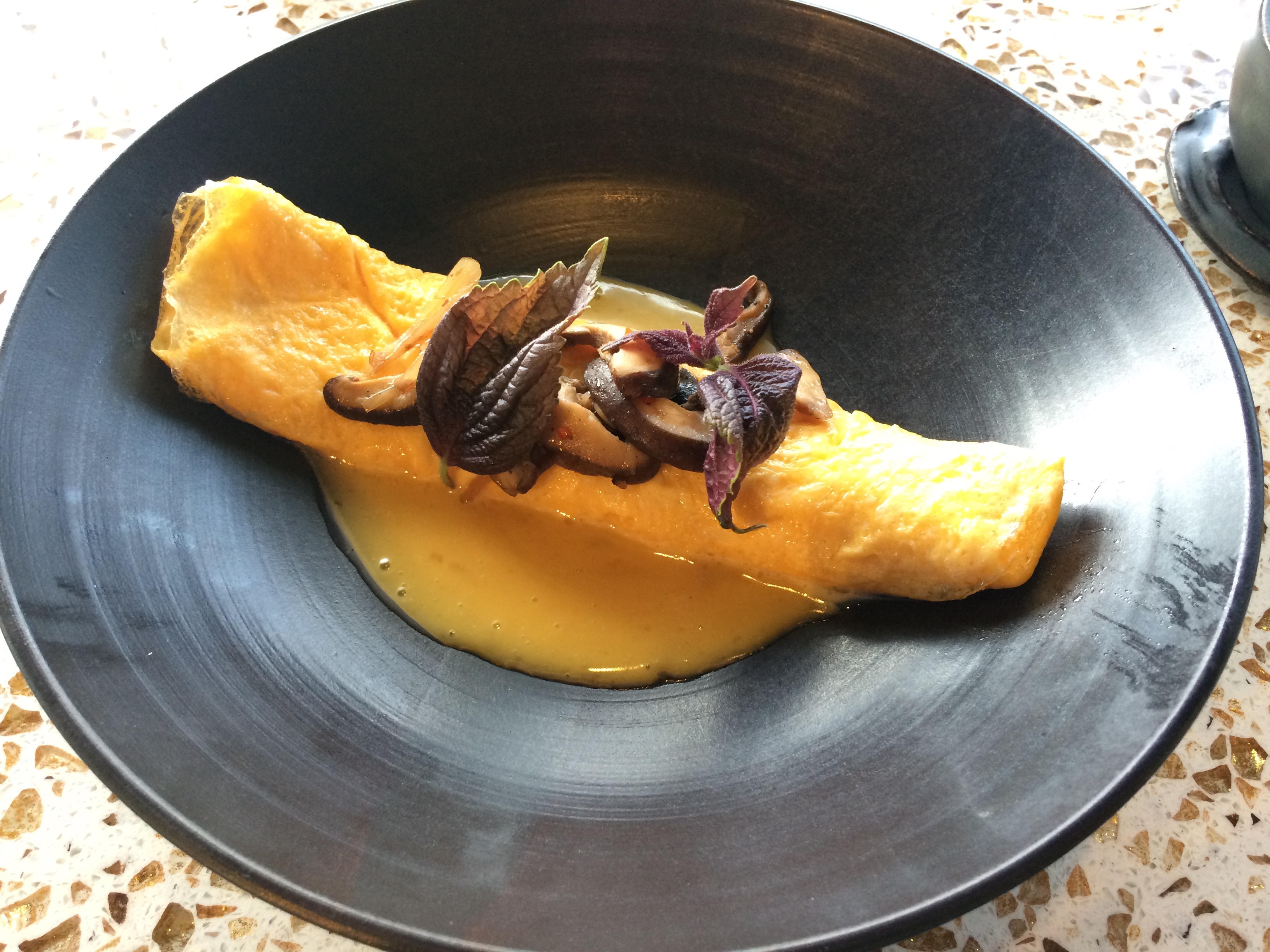No less fancily presented, my spanner crab omelette is served with shiitake relish and chicken dashi (but curiously no toast). The omelette is perfectly constructed, and the spanner crab is gorgeously generous, making for a highly indulgent breakfast. Funnily enough this dish would not be out of place on the dinner tasting menu such is its quality.