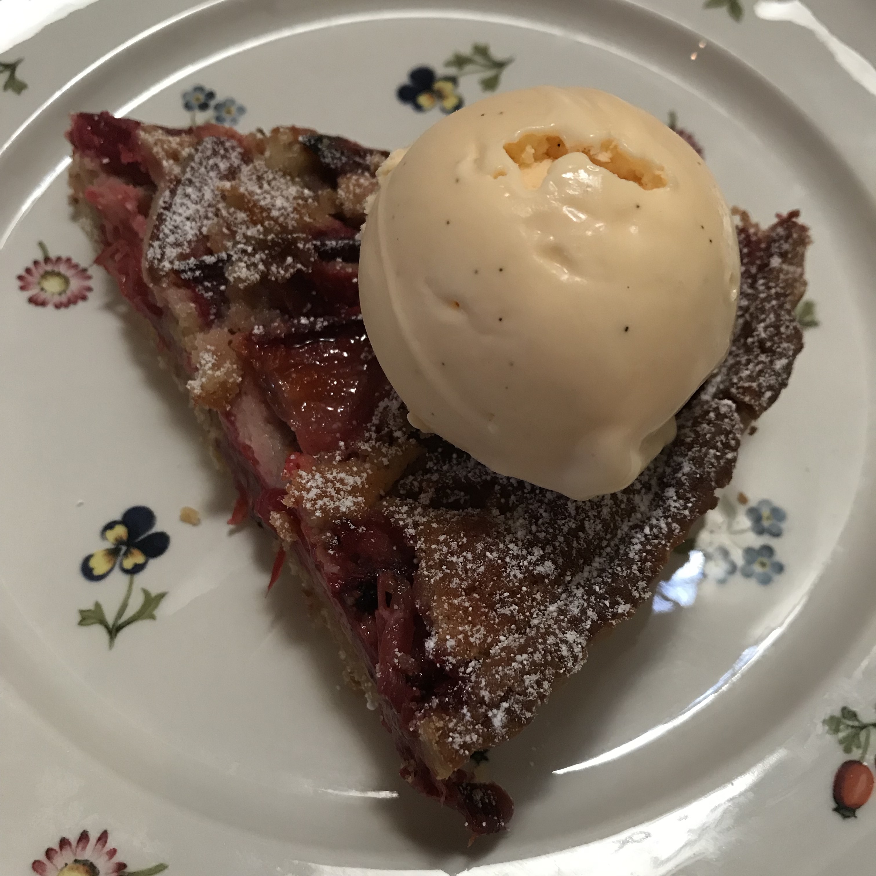 Rhubarb and strawberry tart with vanilla ice cream