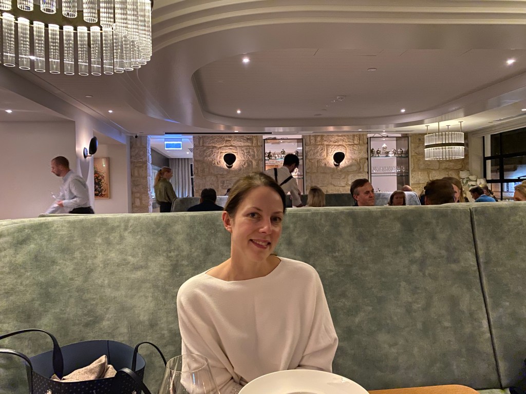 We were going to come to Audrey’s anyway, and try for the bar, but we really didn’t think we’d get in so our mindset was more fancy pub menu downstairs rather than a $150 per head tasting menu. Seated in a luxurious restaurant, Catherine on a gorgeous banquette, we are looking around like we had not seen a fine diner before.