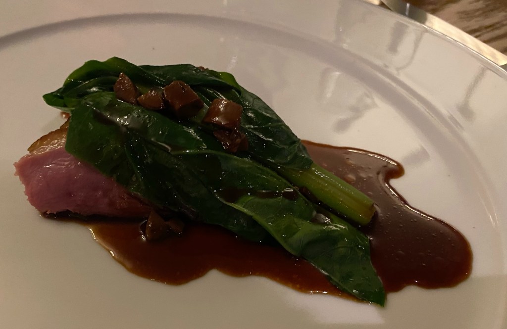 There is no critique regarding the duck from across the ditch mind you. The half serve is perfect for us with dessert and petit fours to come. Bathed in a good helping of flavoursome jus, and paired with cubes of golden plum, there is only contentment.