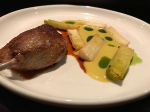 We decided on two mains that we would share to avoid any menu envy. The Kurobuta pork was served perfectly pink, with a whole slow cooked confit celeriac really making its presence felt. The Gippsland duck was served with a pretty beurre blanc sauce, scattered with charred baby leeks. Both were excellent, with some nice contrasting features for us to enjoy while sharing. The pork soft and tender; the duck with that crispy skin around the drumstick, and a more generous sauce.