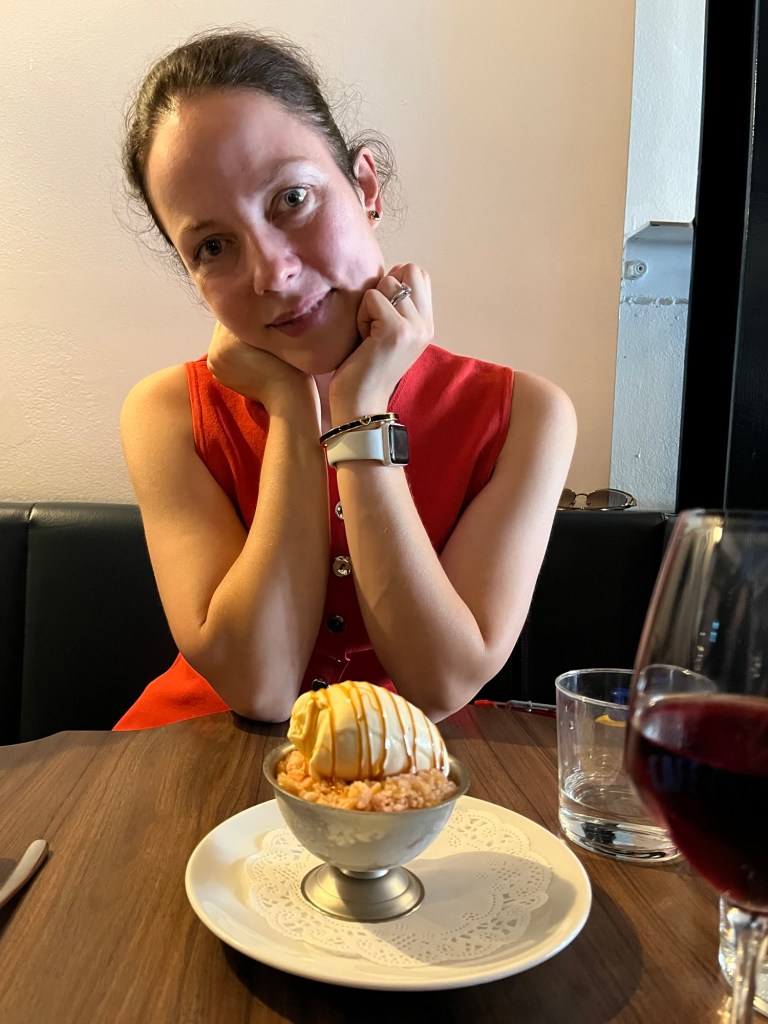 The food had been superb, and the Black Angus main provided yet another powerful showing. Both the rare cut, and the slower cooked osso bucco (with thickish garlic skordalia), were perfectly executed. My weakness for roasted carrots came in confit style with poppy, burnt honey, and buttermilk, and our other side of Sugar Loaf cabbage with puntarella (bitter Catalonian chicory), mint and heaps of pine nuts, was one of those sides that all of a sudden have vanished from the plate. All together it felt like a feast, giving off a very Annie Smithers vibe.