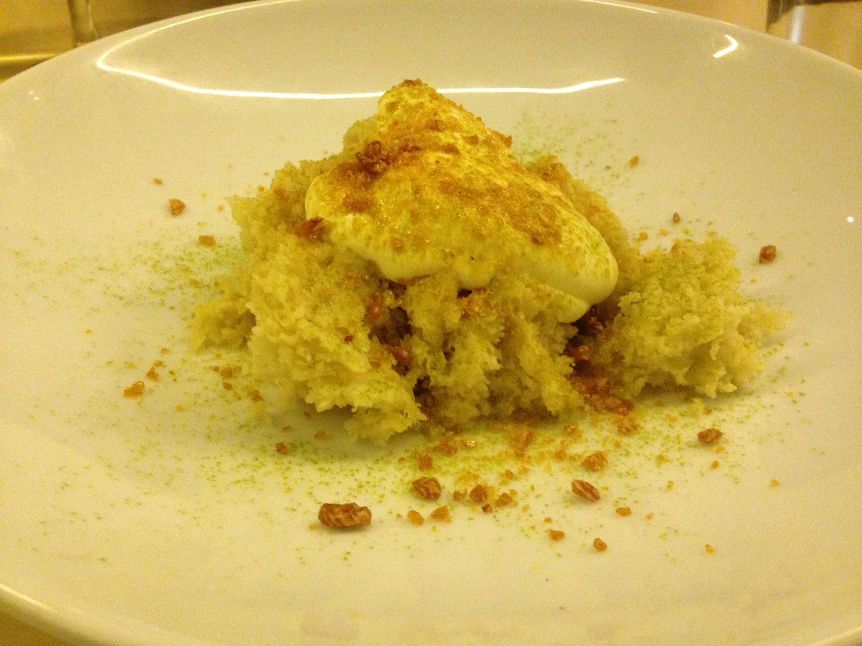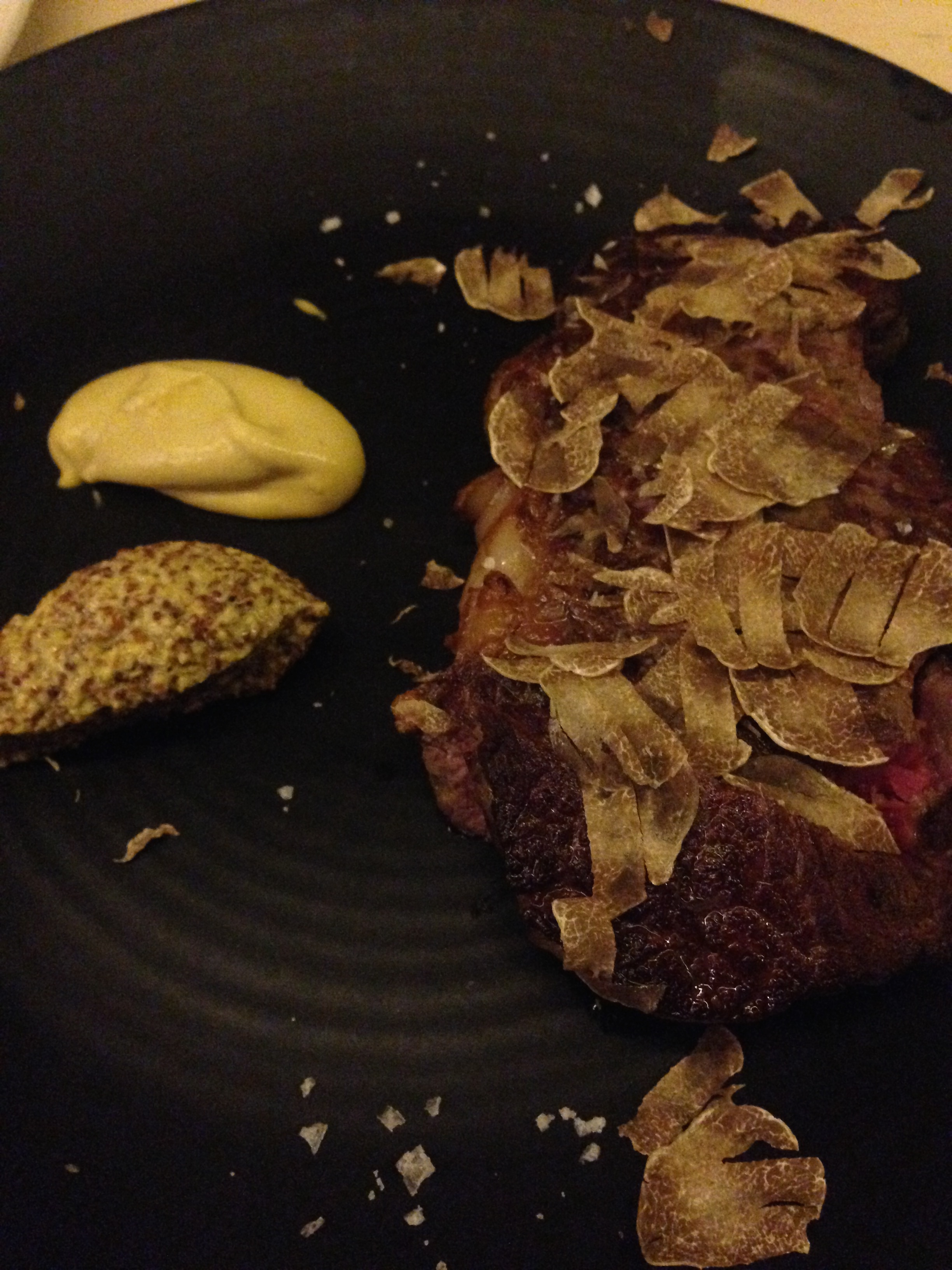 As if an entire roasted chicken is pressed and liquified, then poured into a small ceramic tea cup, over black garlic and tarragon, you are left in complete comfort, yearning for a little more, but knowing that what you’ve enjoyed is enough. Next is a softly cooked scallop covered by an utterly delectable almond and saffron sabayon, with burnt butter. Scallops in a half shell in fine dining restaurants are abundant, and this is the best one we’ve eaten this year.