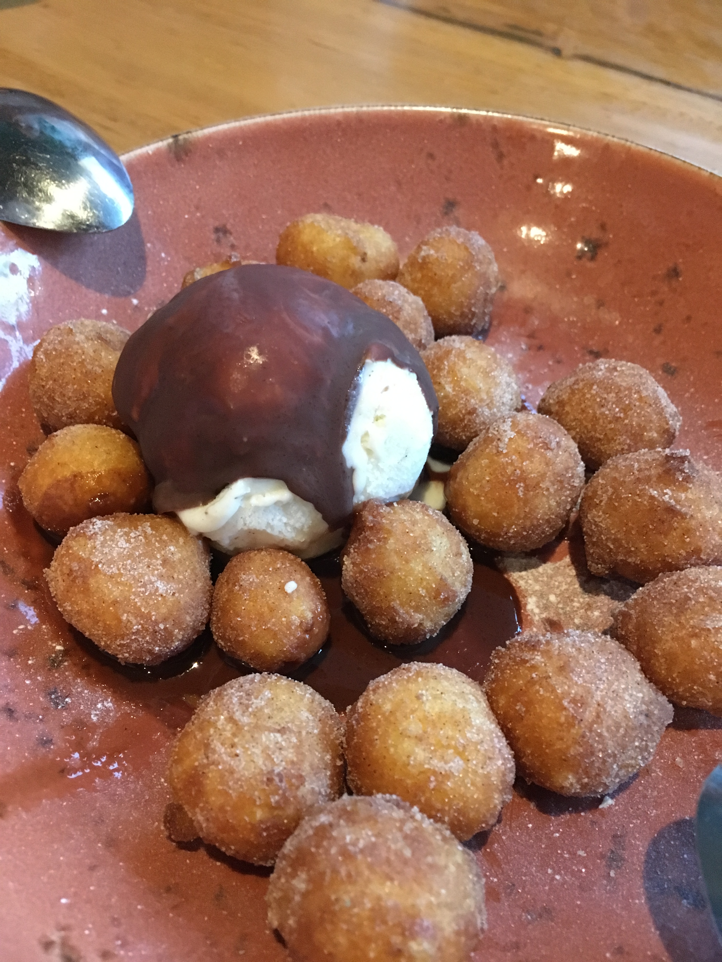 With a little bit of room left, we shared the donuts with chocolate coated vanilla ice cream, which is simple but effective for a shared dessert. More importantly, at this stage I’d tried a couple of the beers, and they are good, with the IPA a little ahead of the pale ale in my opinion. The only disappointment was the double IPA running out, but it should be back early next year.