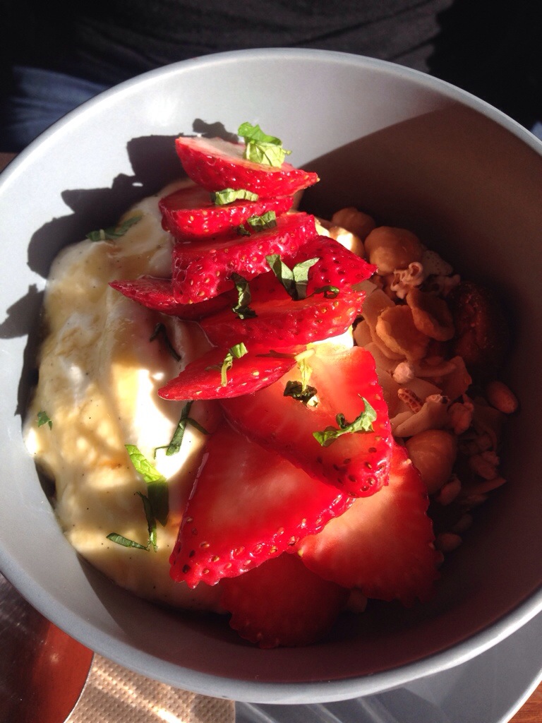 Some of my friends think going to a cafe for muesli is a bit unusual. If I was going to take them to one place to try to convert them it would be Everyday Coffee. The serve isn’t over the top (which is good). The natural yoghurt is beautifully sweetened with maple syrup, topping a delicious muesli mix filled with hazelnuts and dried cranberries, along with some fresh strawberries. Simple but delicious with every ingredient used shining.