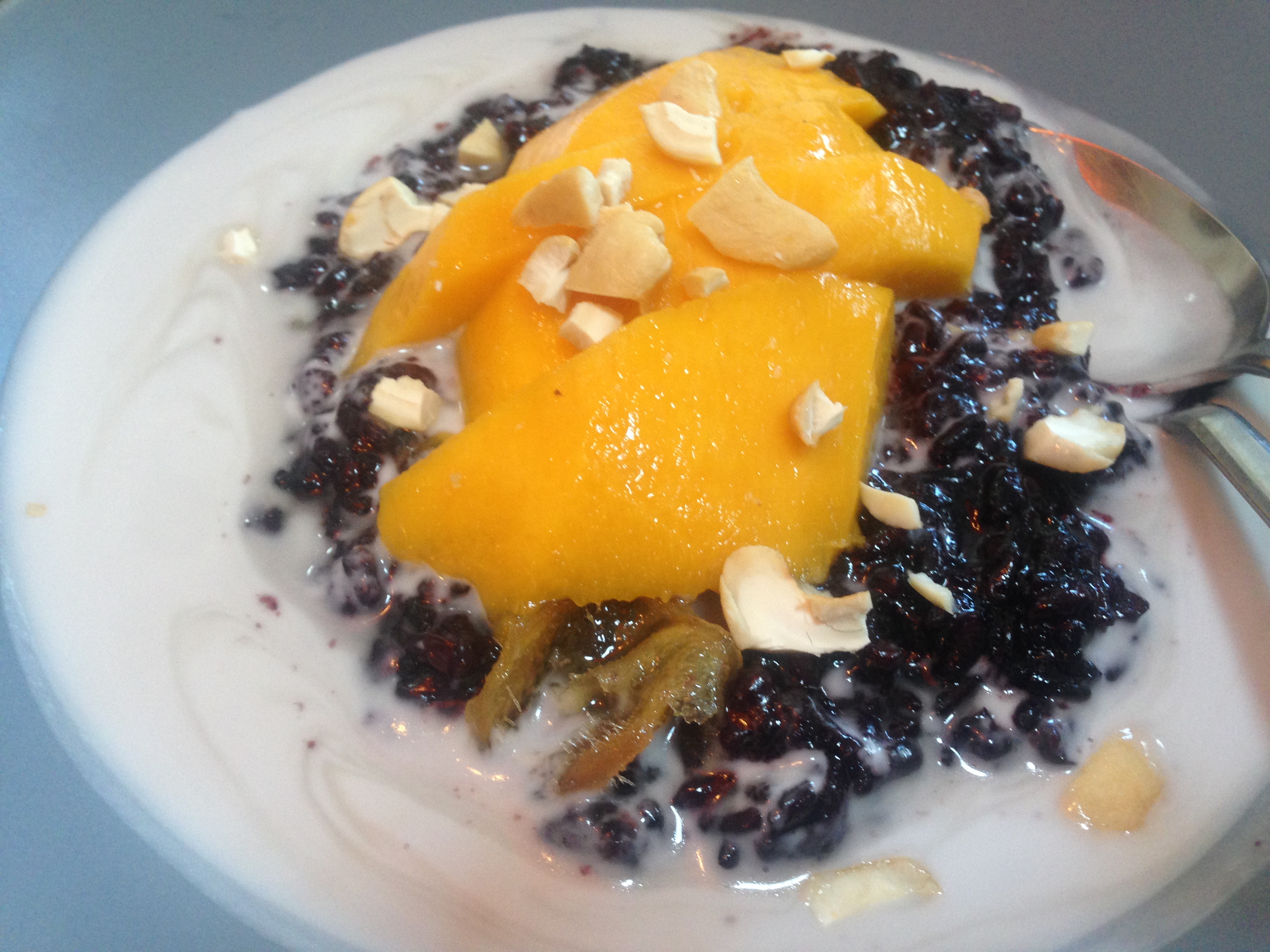 Black sticky rice, mango, ginger-palm sugar syrup, coconut cream