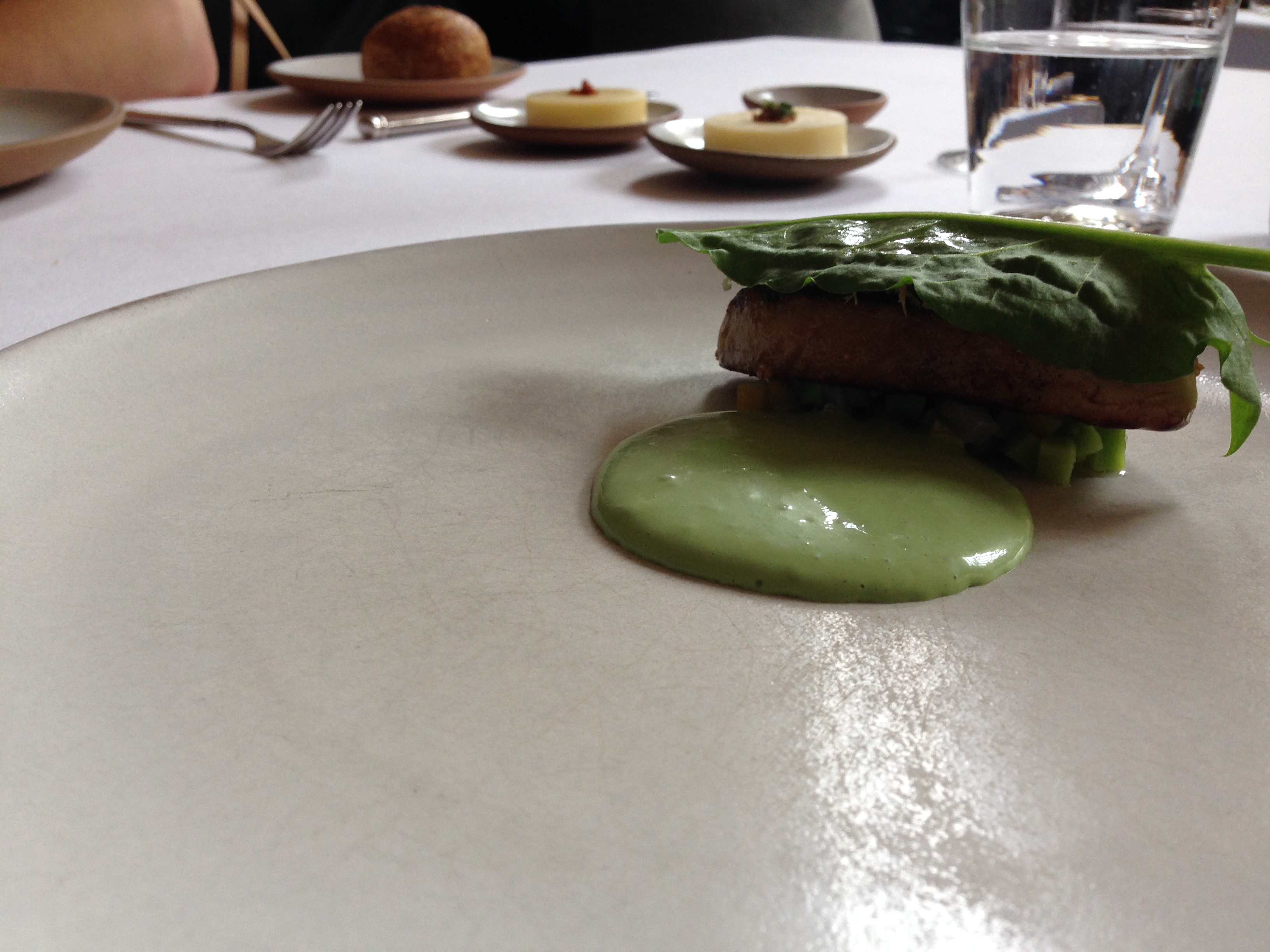 When all you know of a dessert is “quince simmered with onions, honey, cultured milk” you could be led to believe you are about to eat another savoury course. However, the waitstaff put this impression to bed when they informed us the saddleback was the last of the savoury courses. So what we discovered with mouthwatering bite after bite is an intriguing dish, luckily not tasting of the onions the quince are poached in, but in perfect balance both in taste and texture. The slightly sweetened cultured milk has little pieces of honeycomb below it providing a crunchy burst of sweetness of its own. There are two strips of citrus peel providing a bitter note, with the divine honey bringing the dish together. It is one of those times where you don’t need to combine all five elements, but when you do you are rewarded.