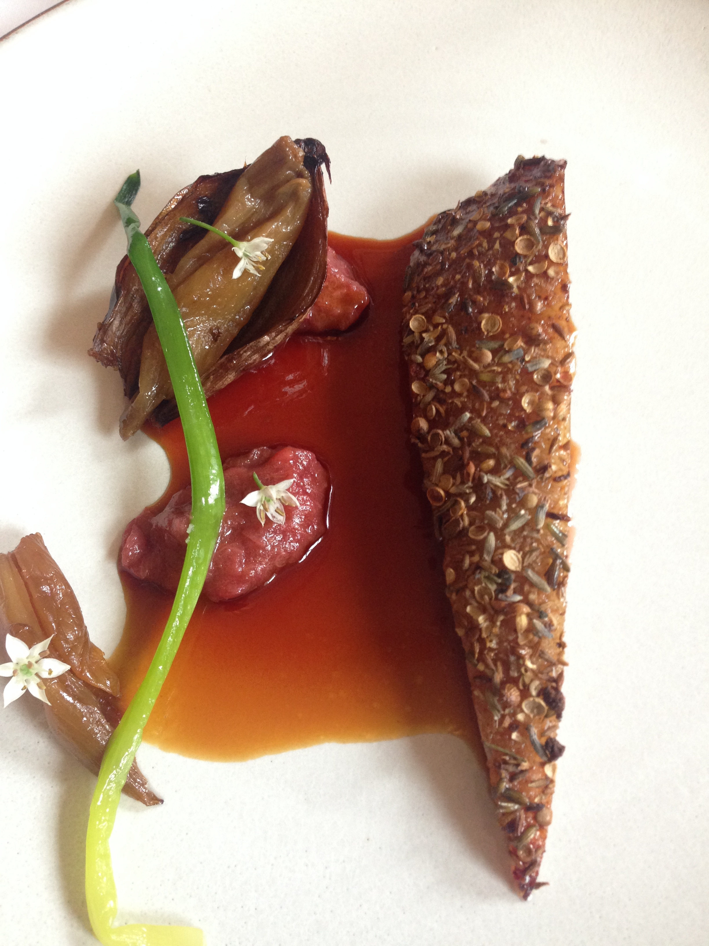 Another modern classic is any dish featuring egg yolk. There are so many variants on this theme that it needs to be amazing, otherwise it is passé. Dan Hunter’s version is restrained for such a typically rich dish, and the dried jerusalem artichokes, and soft flavoursome potatoes, enhanced by the comte and vin jaune sauce, are definitely amazing together. The raw wallaby, in an array of spices, is covered in radicchio that has been soaked in maple syrup and charred. The charred beetroot it is served with is utterly superb. The two tie each other together in one of the best dishes I’ve eaten. Yes, it is raw wallaby and that is confronting in more than one way, but this is culinary genius. It is building on a foundation of two ingredients that work together, and launching it to out of space.