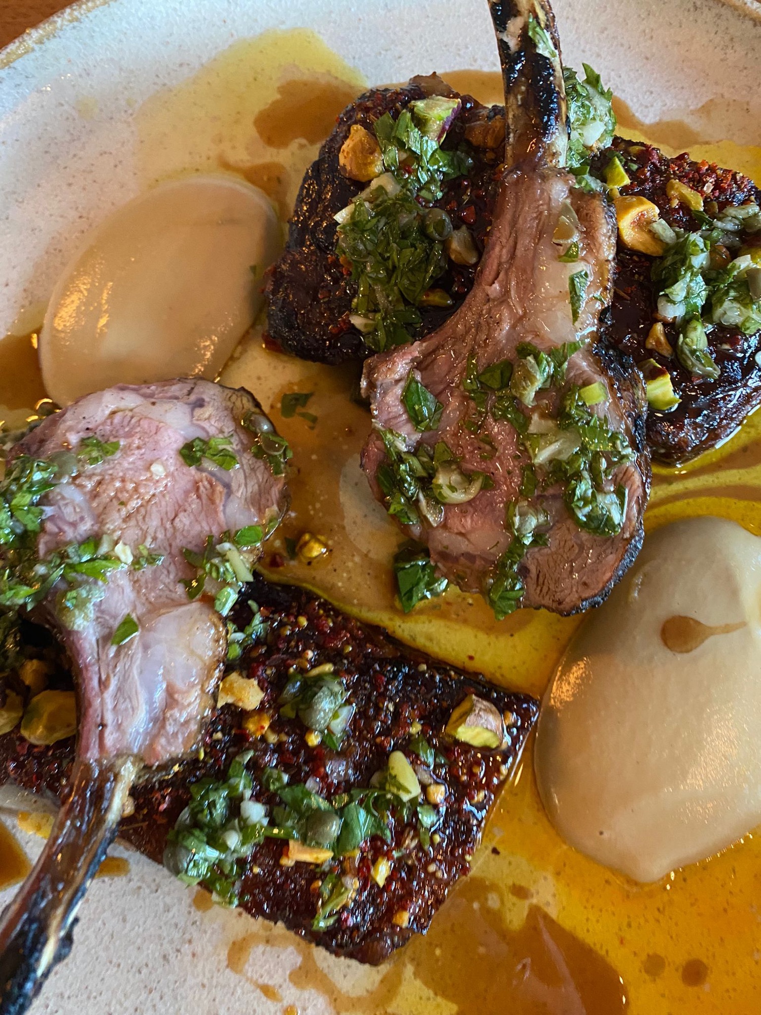 The tuna crudo was great, but not as good as the last version. The abalone skewer is still one of the best snacks I’ve eaten, and is unmissable, but I’m told the scallop is just as superb. Our larger plates, in particular the lamb, were beautifully executed. In between the crispy duck is new to the menu, and anyone who enjoys duck should be eating this.
