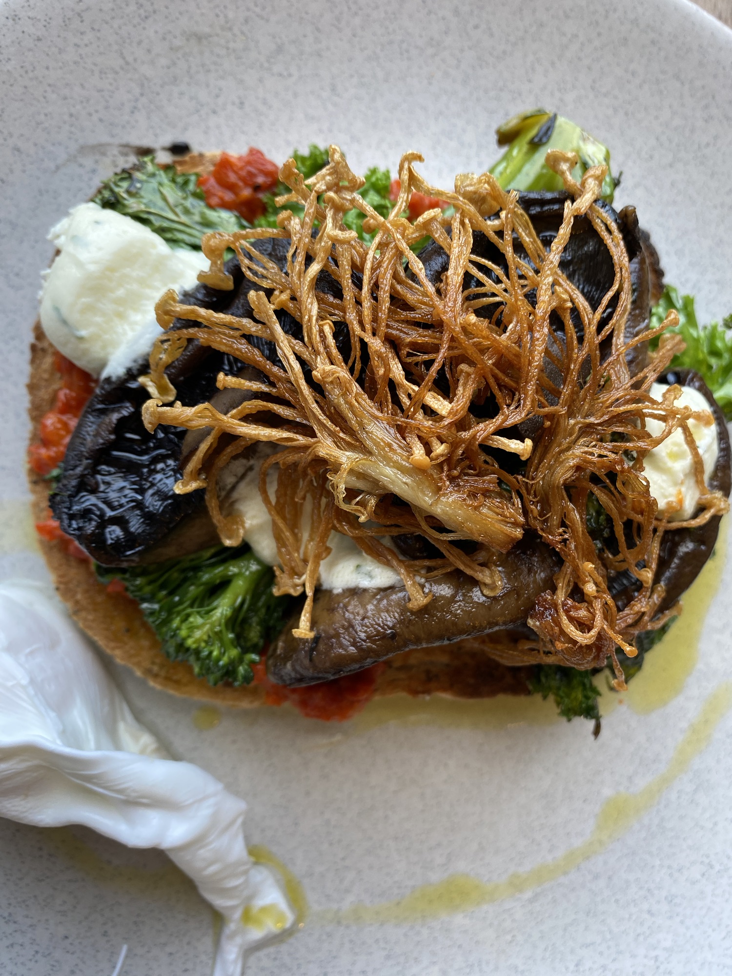It has been a very long time between visits, but I’ve always enjoyed Wide Open Road (my review from 2015 here). Today the cafe fare is excellent, especially the presentation on Catherine’s thyme roasted field mushrooms, topped with fried enoki mushrooms. As cafe fronts for roasters should be, this is exceptional coffee, and is worth the trip out to Brunswick.