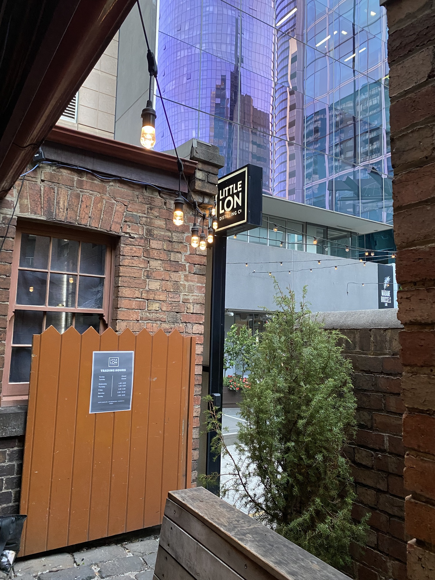 Little Lon is in a cute spot near Little Lonsdale Street on the eastern side of the city near Spring Street. The heritage building holding the bar is tiny, and most enjoying the drinks and snacks are seated outside. They have a stable of gins, and make a nice non-traditional negroni. Catherine’s peach fizz was delicious, with the right balance of booze.