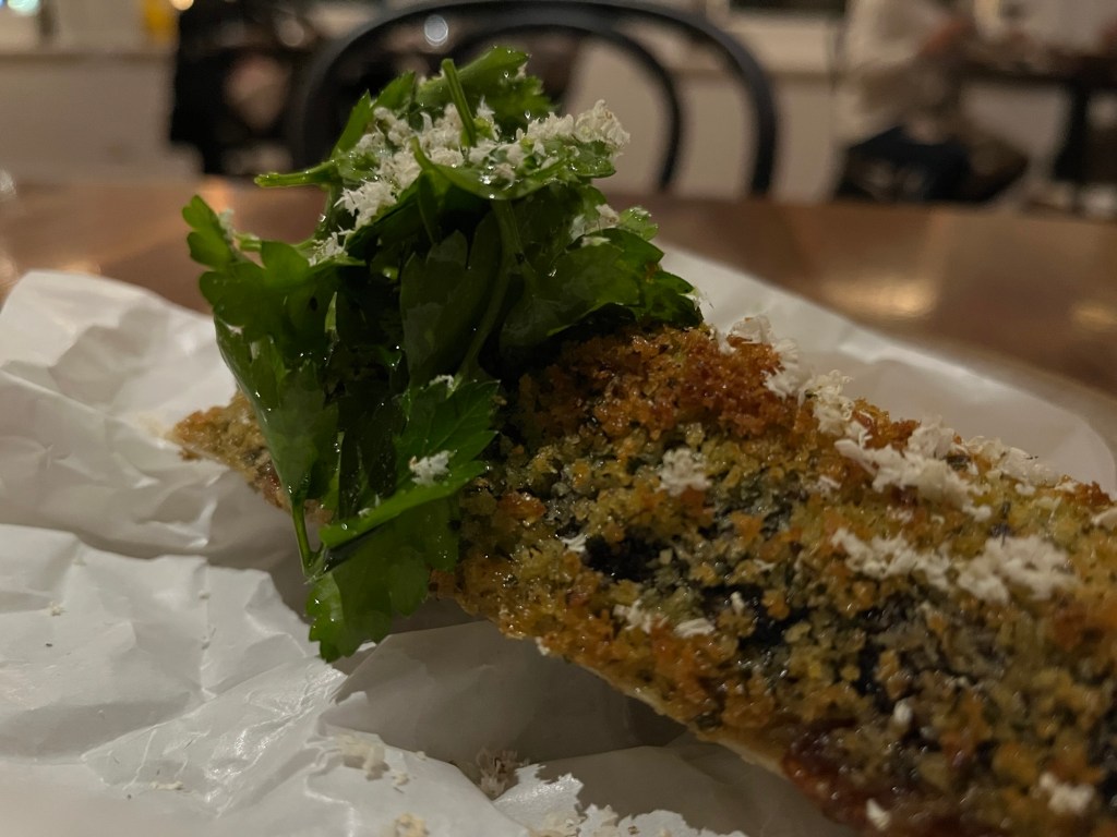 Those museum influences have nothing to do with art. I’d never thought about it, but you cannot cook with an open flame (ie gas) in a museum or art gallery. There is simply too much risk. What makes me curious is whether the name of the restaurant (a nod to wood often used in flame grilling and smoking) is a bit of tongue in cheek. The natural question to ask now is what is the food like?