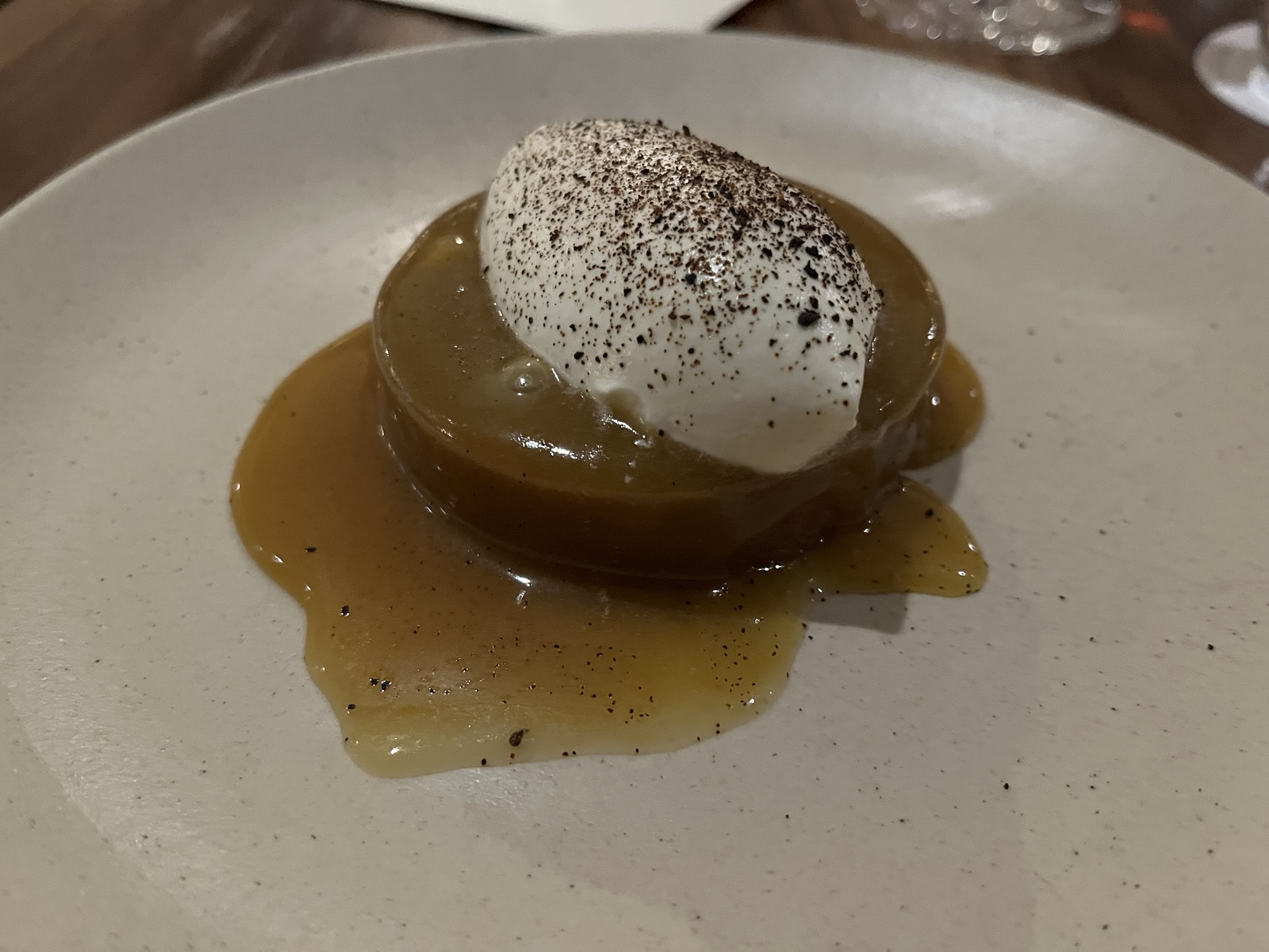 For our final savoury dish we select the lamb rump. The primary reason I was swung away from the hanger of beef with ox tongue (a favourite protein) was the Jerusalem artichoke, which I rate as my favourite vegetable. Throw in some red cabbage, a delicious sauce for the lamb, and a side of heirloom beetroot, and we are in business. The lamb, like the blue eye, is perfect. The artichokes are just the same, and unlike some other big meals, Catherine and I finish every last ingredient on our plates.