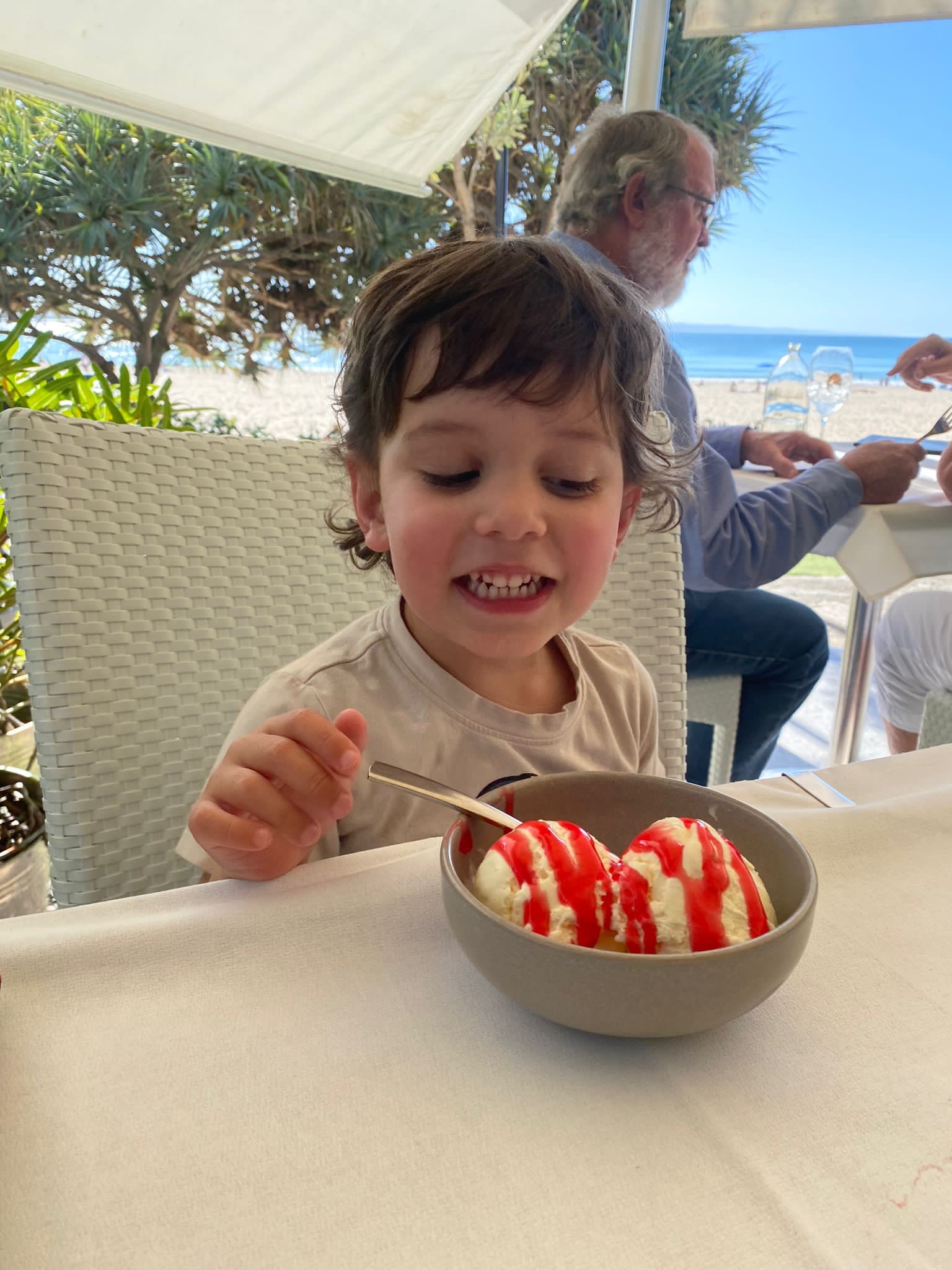 To help celebrate being back at Sails we had started with a glass of Louis Roederer, moved into the Soave by Suavia, and indulged in a 2017 Scotchman’s Hill Cornelius Chardonnay with the Bugs. This also softened us for the unbridled enthusiasm of our other guest, our 4 year old toddler, who at one stage chased a bush turkey over 100m down the promenade. With Mum and Dad trying to keep up, it looked like we were doing a runner!