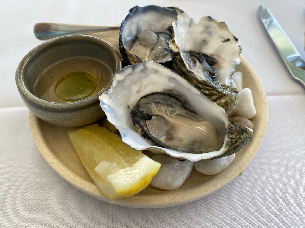 My freshly shucked oysters are a nice beginning, coming from South Australia. The scallops in their half shell with cauliflower puree, were good without being as juicy and succulent as you might hope for. However, the Mooloolaba king prawns were wonderful and fresh, beautifully cooked, and nicely paired with the flavoursome roasted cabbage.