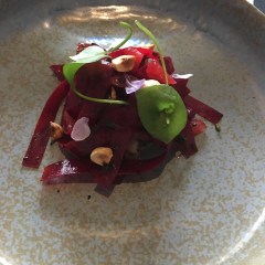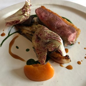 During the various tasting courses we were struck by the wonderful combinations of flavours, often subtle like the beautiful firm beetroot covered tuna and scallop tartare, or deep and gamey like the duck with carrot puree, and some of the most delicious roasted witlof imaginable. The latter was the last savoury course and when you add my favourite bitter leaf in radicchio you have a stunning dish. The former was bound by a mirim based sauce that instantly identifies with this cuisine.