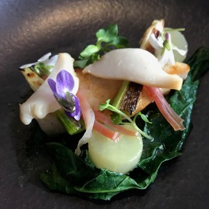 Naturally far richer, the dark chocolate, hazelnut and miso dessert is just as beautifully presented. The texture of the crisps works well with the softness of the other components; put together it is simply gorgeous to end this wonderful meal. Back to the start, the snacks were equally delicious but on the other side of the spectrum. Here we embraced each bite of the chicken liver parfait in Paris-brest, and delighted in the depth of the cod roe on nori. The amaebi (sweet shrimp) in the corn cone, and teriyaki octopus were right on the mark too.