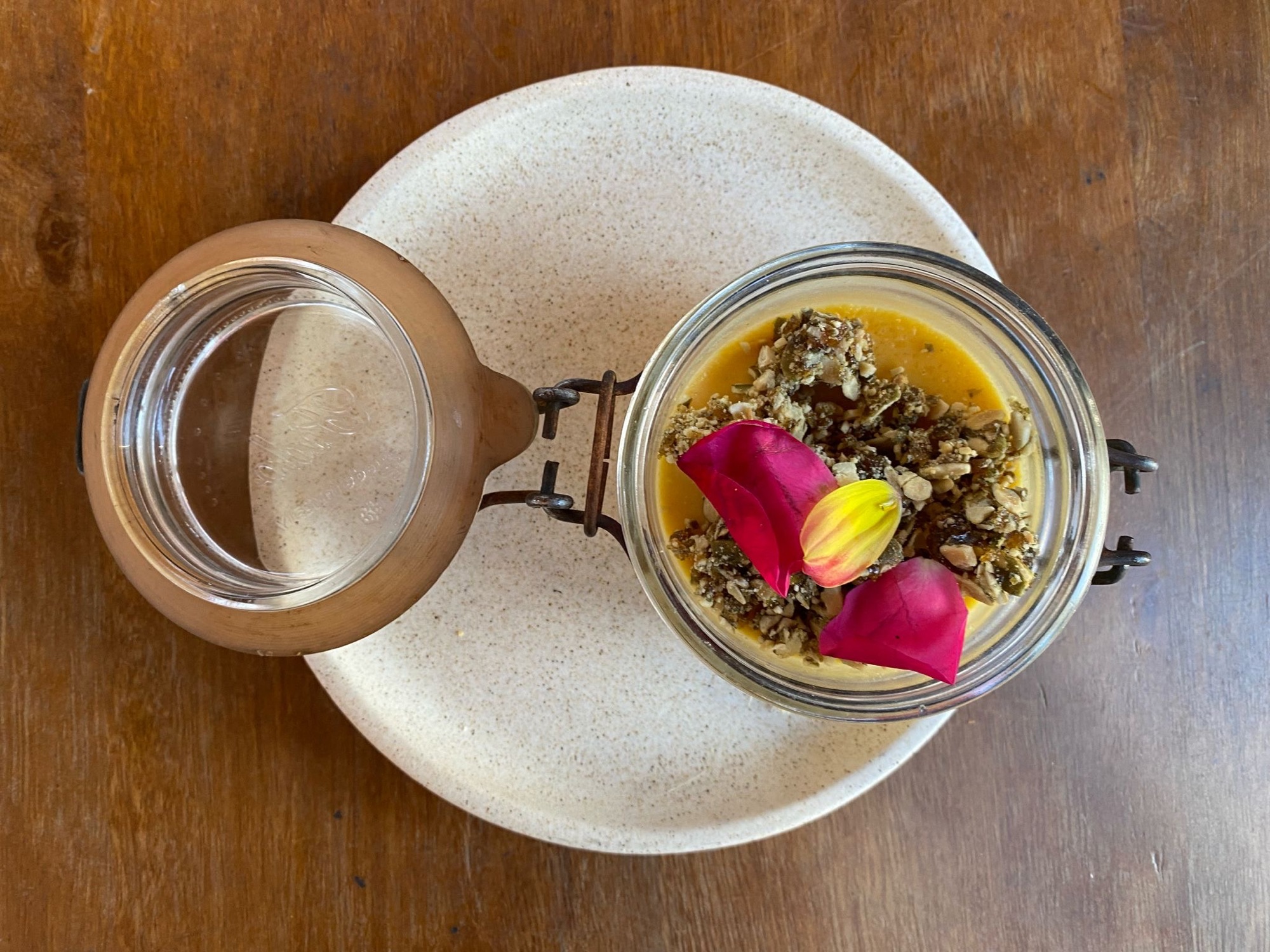 After our walk around the native and vegetable garden, we sat for our strongly flavoured coriander and celery refresher, that had a lift from the spice, and a certain addictive quality. Next we braced ourselves for a more balanced dessert, but were pleasantly surprised when the “Yesterday’s bread” turned out to be a fascinating take on bread and butter pudding, that shone from both a presentation, and flavour perspective. The toffee coating on the pudding, the use of lemon in several elements, and the creme fraiche providing a heavenly dessert.