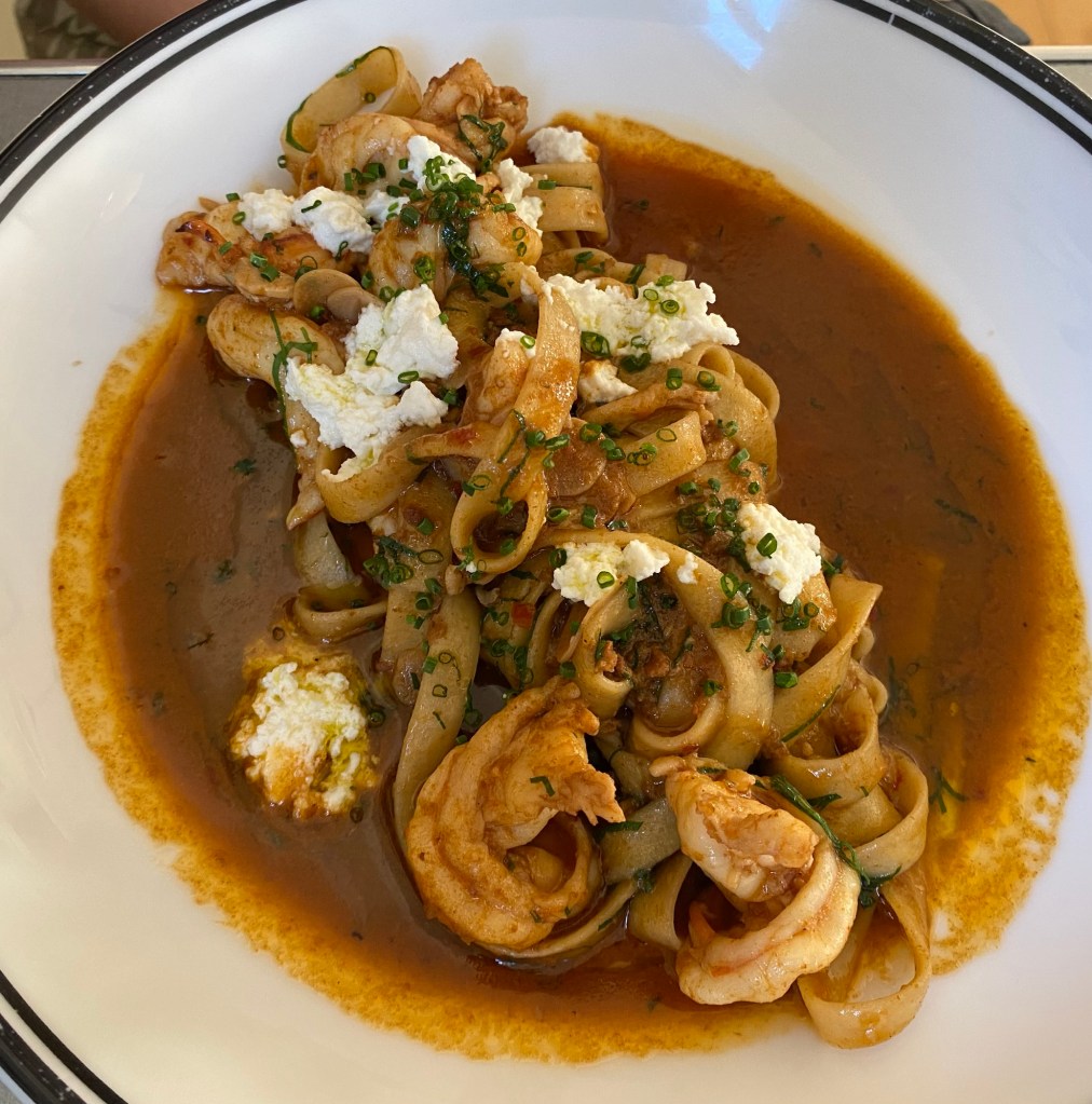 Having let Riccardo know that our friends were 15-20 minutes late, the best practice would have been to bring snacks to the table which is the first course, quickly after they arrived, but I know kitchens don’t work that way and there is an order to service. At a restaurant with a set menu it is easier though.