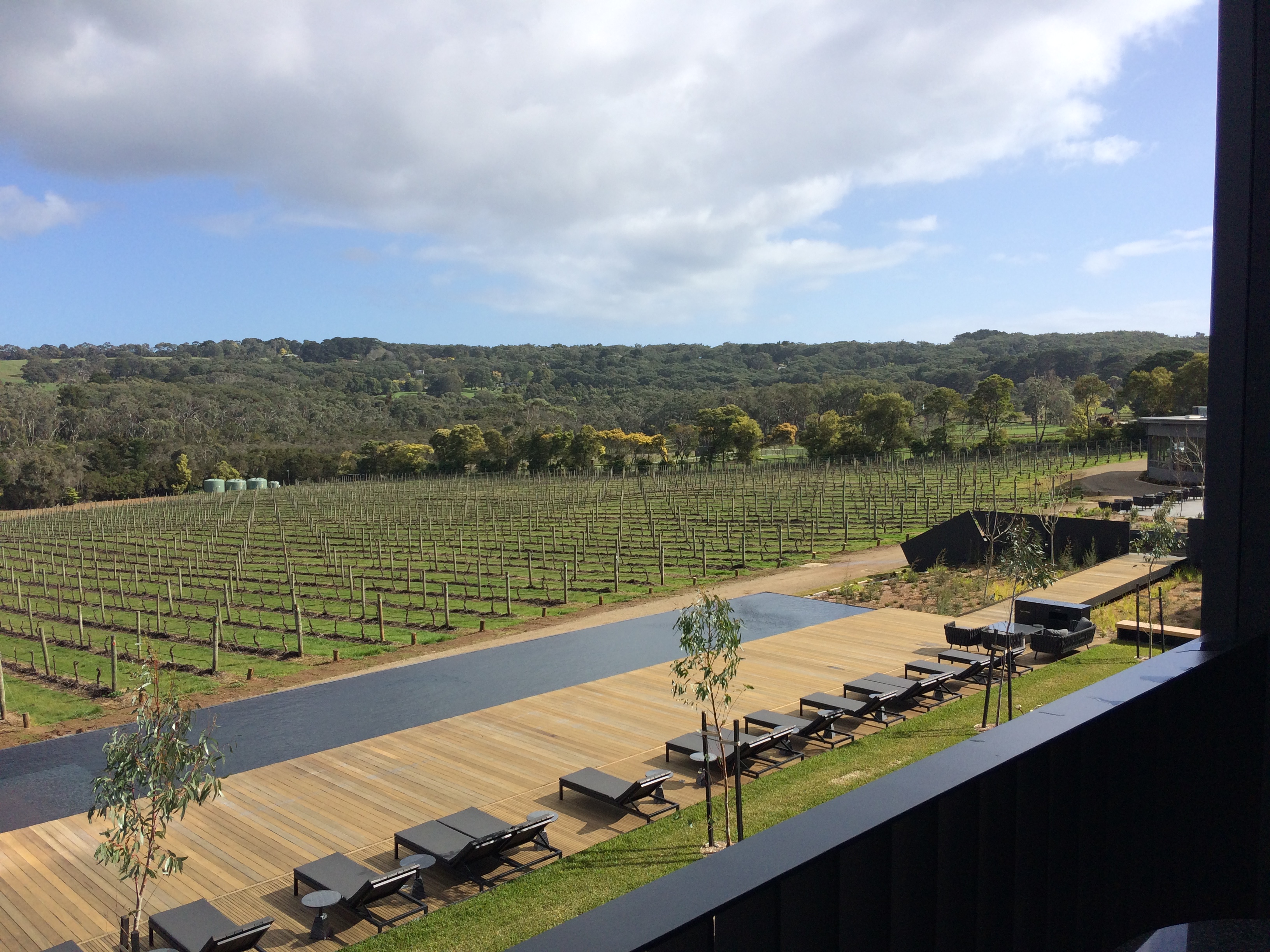 It might be the combination of the winery, restaurant, and sculpture garden, but it’s not. As I walk in, I have a Port Phillip Estate feeling; the sculpture garden and outlook has a McClelland Gallery and Jackalope vibe; and the winery with its long rectangular shape, featuring floor to ceiling windows, has been done before. The view is magnificent by the way. Whatever it is, this place feels special. It feels different.