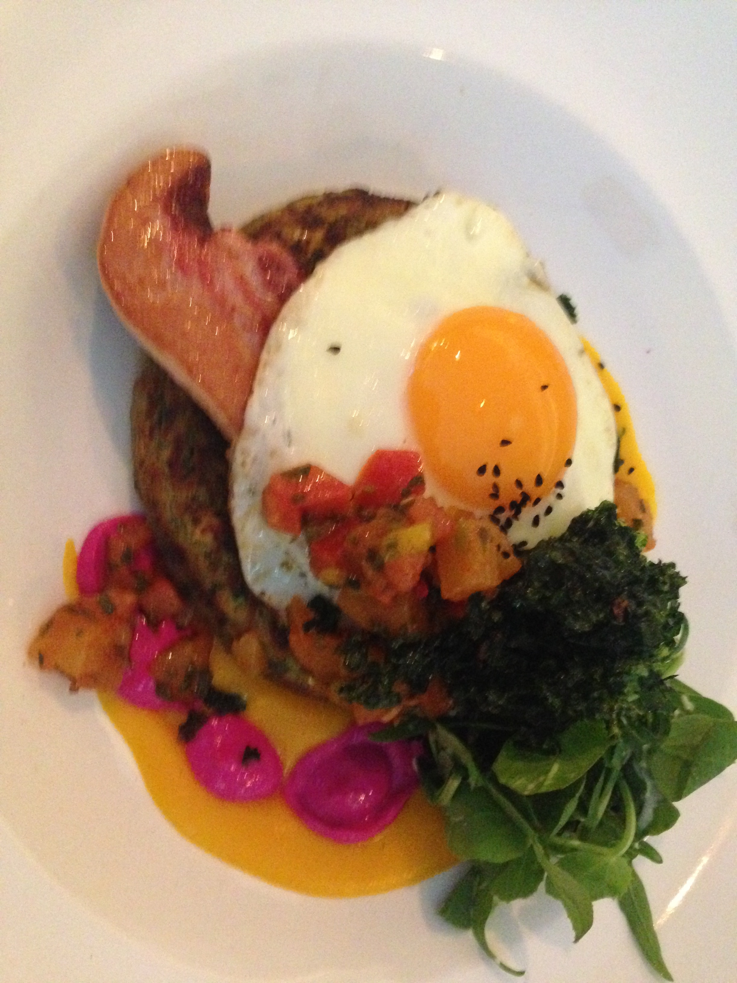 Last time here, the food Catherine and I tried was memorable. Yet again, as everyone has their first tastes you know The Grain Store is delivering yet again. Catherine’s Pink Lady, buckwheat and ricotta pancakes are divine, and my colour is coming back as I get right into a bacon steak served with sweetcorn fritters and a fried egg. Things are good.