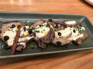The set three (or four) course menu for a few busy weeks of summer makes complete sense, and is an oasis for us. With plenty of gluten-free options, Catherine has the rare opportunity to actually choose her adventure, and I am pleased that her adventure doesn’t feature my preferences, allowing double the tasting. As we sip our Bellini, and Coravin poured Fiano, our beautifully presented entrees arrive.