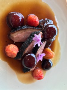 Another step in the flavour profile is added with the duck from Mount Macedon, which has skin to die for with the native pepper put to good effect. I can give or take the acidity in the tomato (which has been peeled!), but the sweetness in the cherry is the right stuff, and the sauce brings it together wonderfully. Again, not overdoing the number of components allows the wine to become an important element. It is impressive.