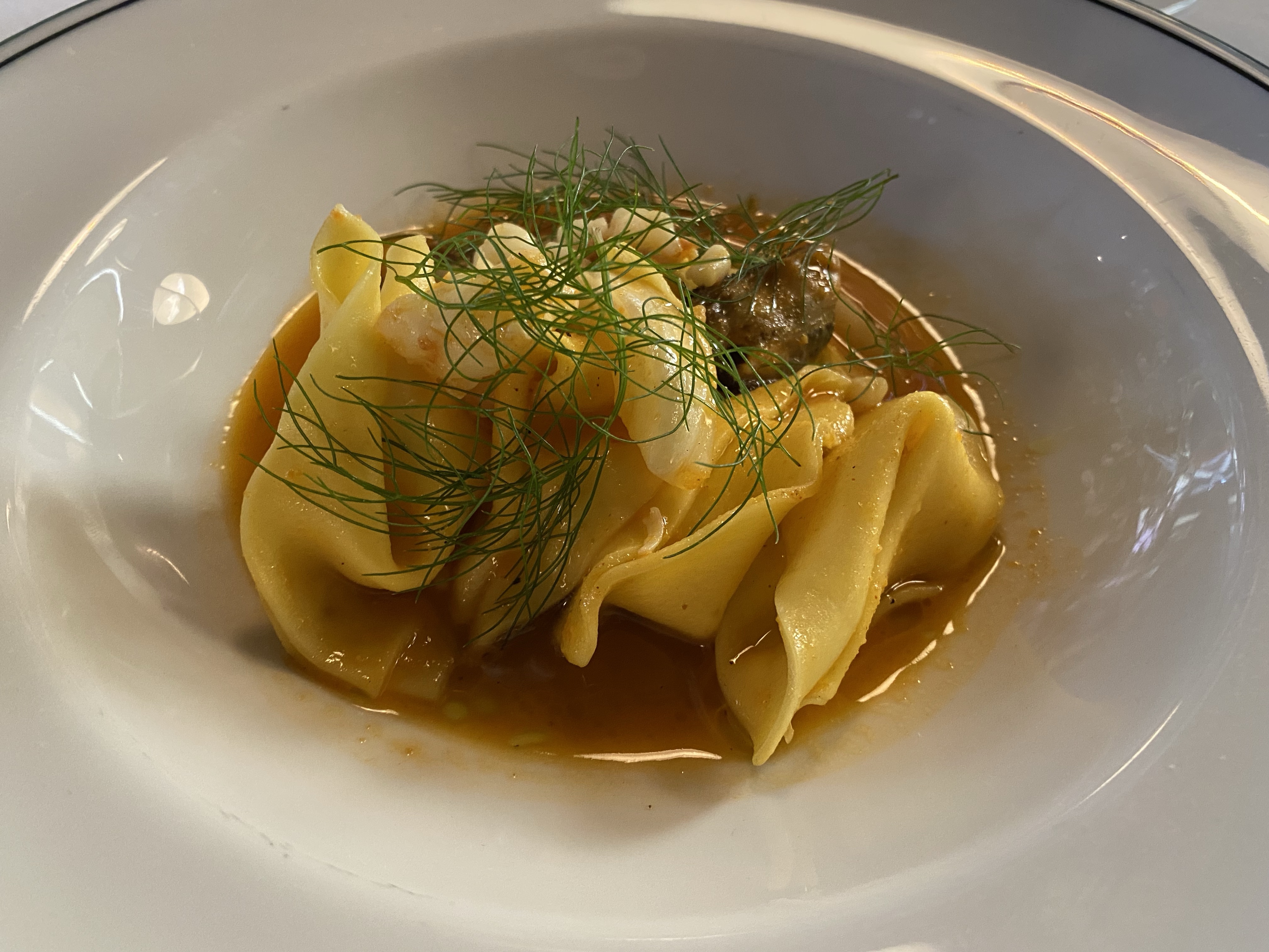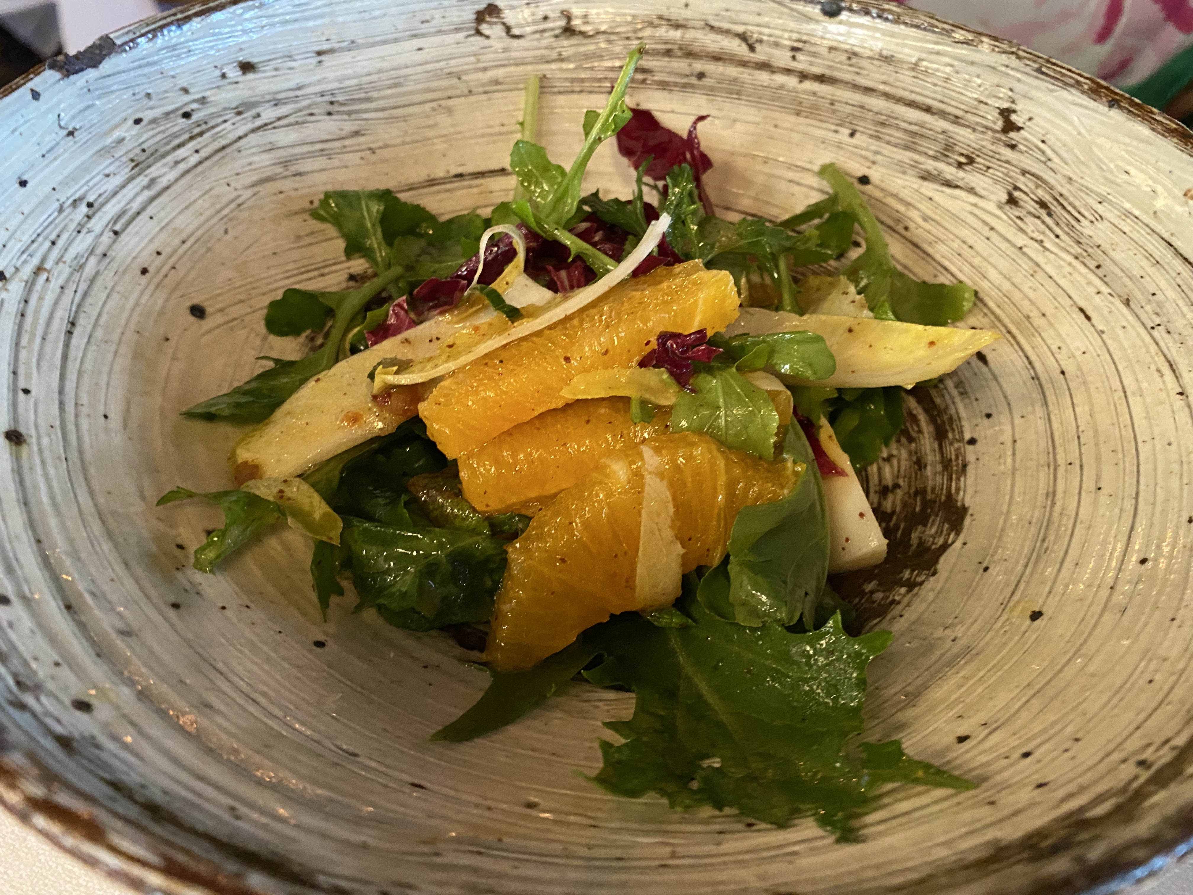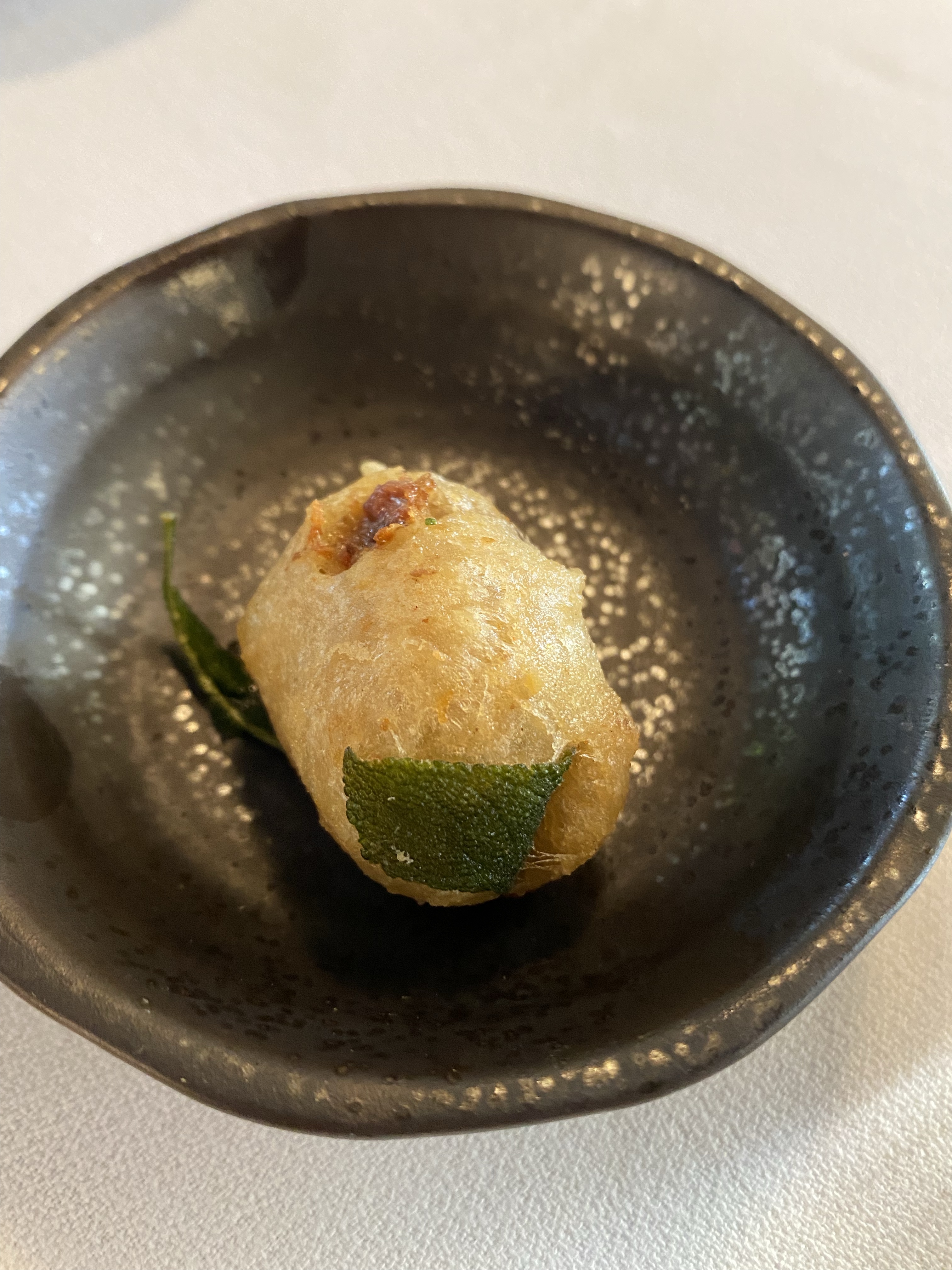 Having let Riccardo know that our friends were 15-20 minutes late, the best practice would have been to bring snacks to the table which is the first course, quickly after they arrived, but I know kitchens don’t work that way and there is an order to service. At a restaurant with a set menu it is easier though.
