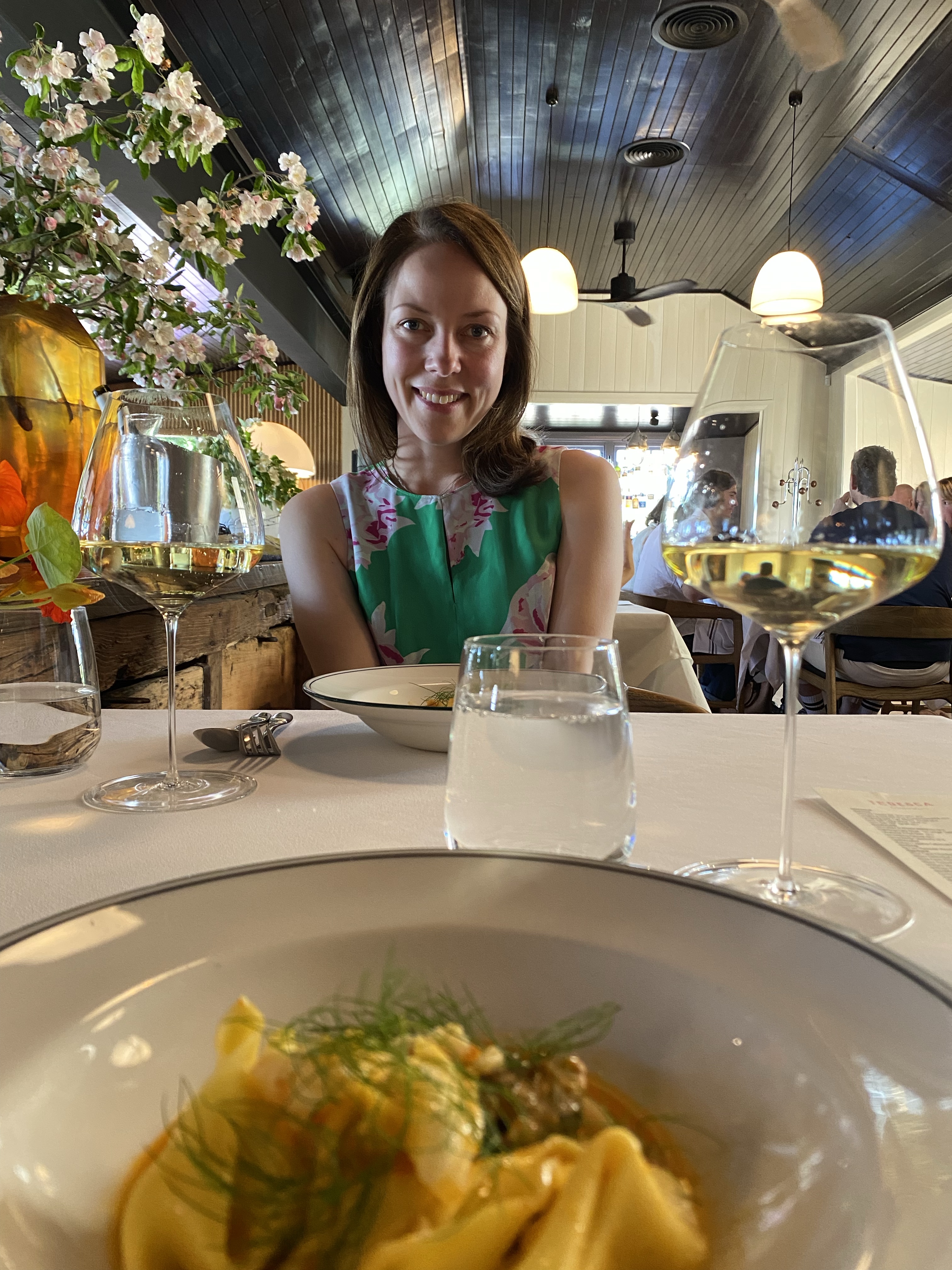We were not alone by any stretch on the terrace. There was at least half a dozen tables finishing their meals in the heat, and others attempting to beat the dining window inside. At no stage was there any apology for the longer waits between courses, or for the stretching of the service team. In fact, I had to ask for my wine to be refilled with our bottle at the waitperson station so many times that Riccardo joked I was “thirsty”. The issue was each refill was three sips, and I like to drink a little after each mouthful. It is a winery after all.