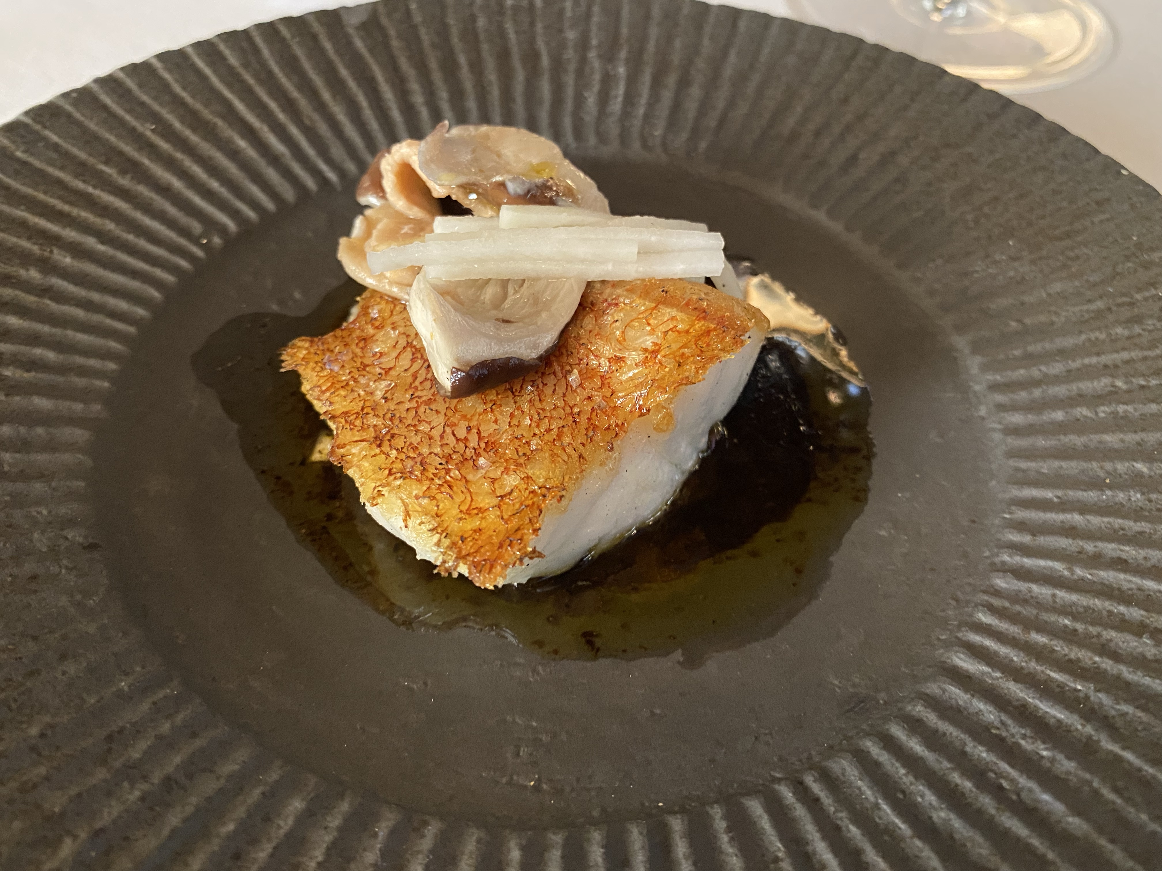 Earlier we had been warned about our two hour window (which was clear on booking as well) so with one course to go, and getting towards 2.15pm we are very aware our time is coming to an end. Interestingly, as a sign of things to come, the doors to the terrace are opened covertly around 1.30pm and the warm air starts heating the dining room, as a nod to the need to finish up that seems to be a feature of the early service, but perhaps not a good feature on a thirty-five degree day.