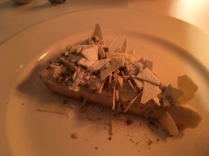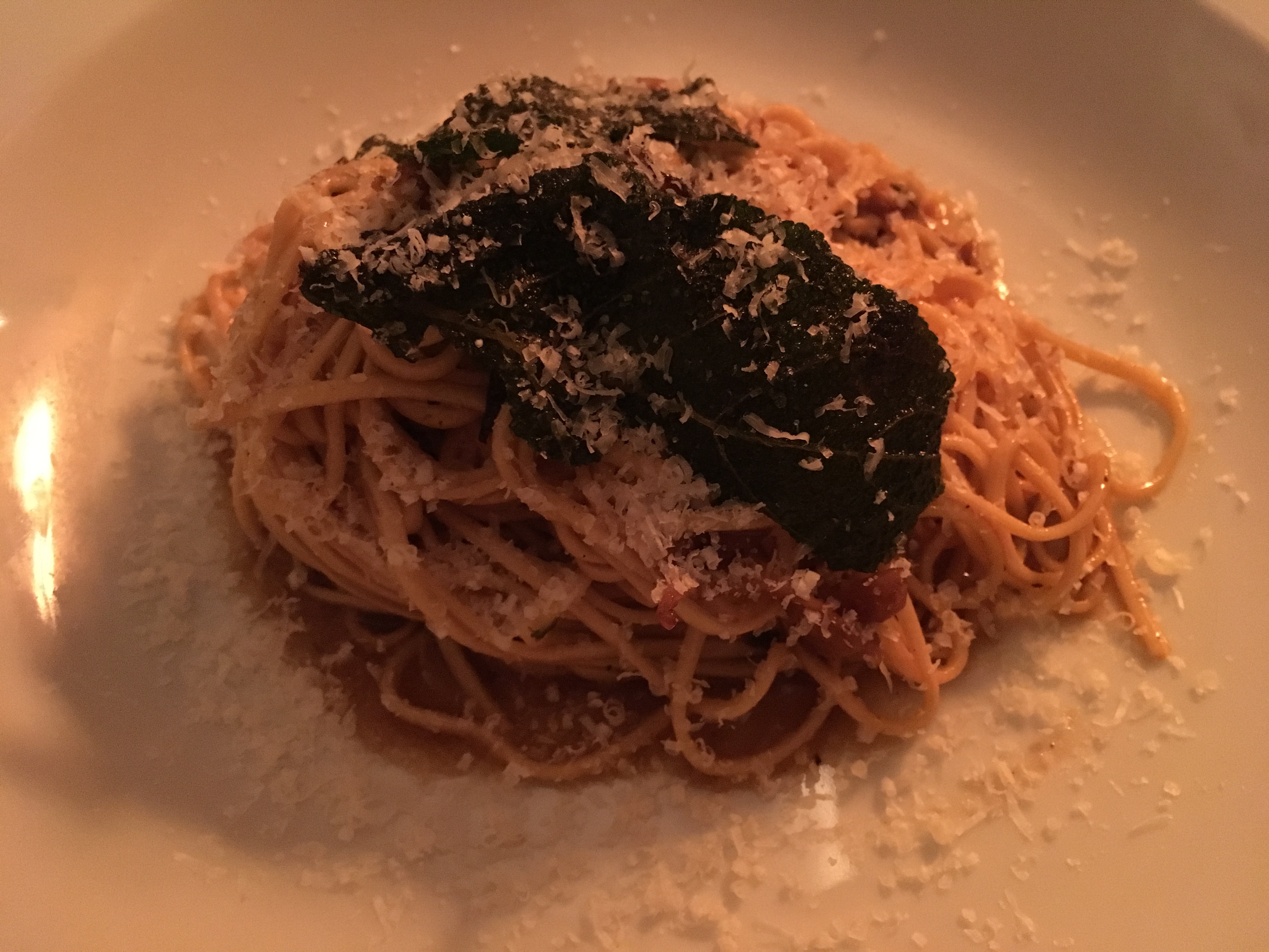 I’ve been here with groups, and by myself, but tonight it is with Catherine to celebrate the anniversary of our first date. Several years later we really combine well for dinner, knowing each other’s dining habits intimately. By virtue of that understanding, it doesn’t take long for us to agree to share a starter, pasta, main, and dessert. This isn’t for everyone, but too many times people miss the balance between trying several courses and dishes, and feeling uncomfortable at the end of the meal.