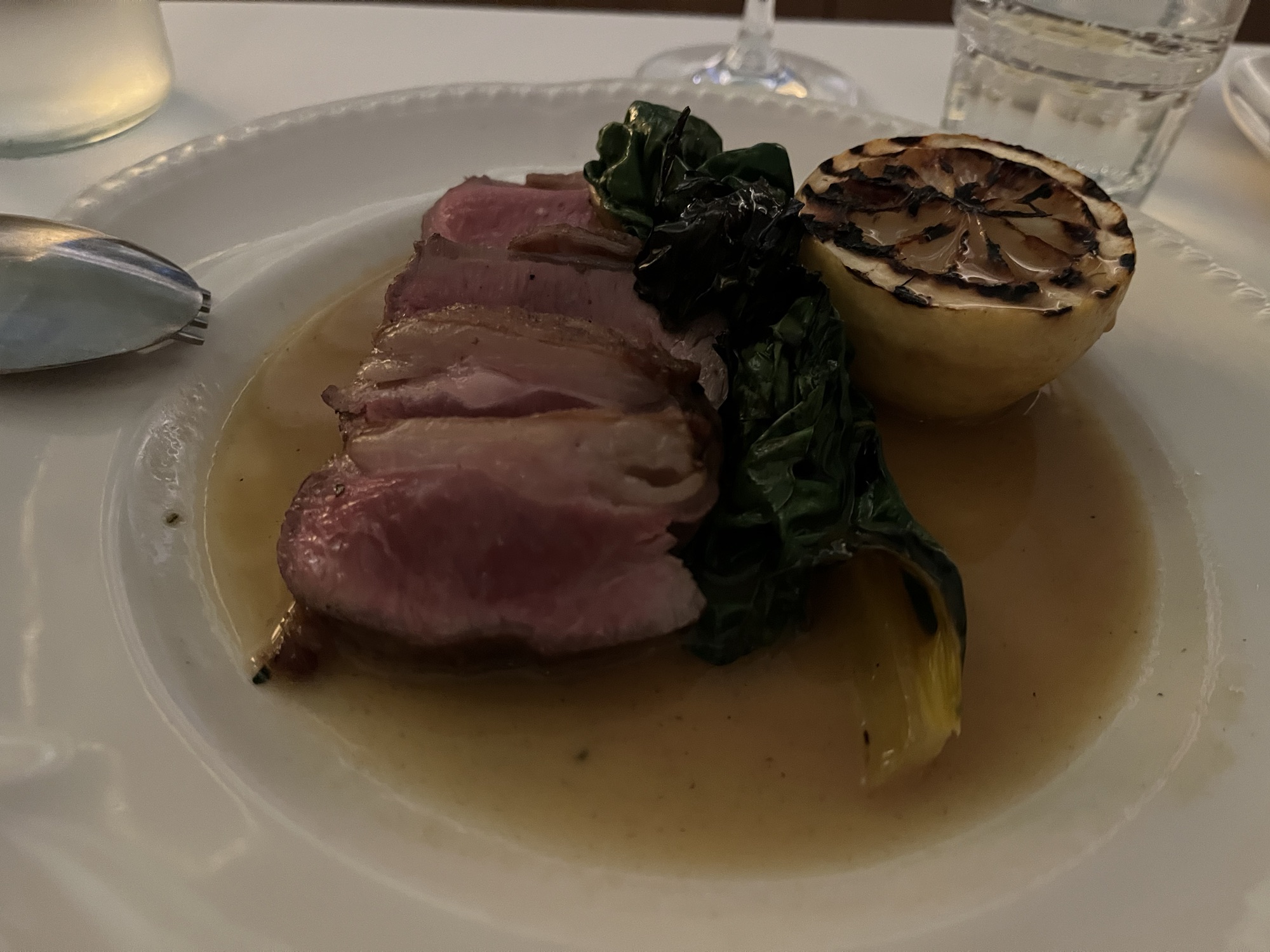 The medium bodied red wine I enjoyed with our lamb was curious enough for me to research following dinner. Made in Alto Adige, Italy, with two grape varieties I’m not familiar with in Schiava and Lagrein, it is great the restaurant is choosing to showcase something so unusual. Had I not already been a fan of Northern Italian wines, perhaps I would have stuck with the safer Grenache. I’ve got used to trusting the intelligence of the sommelier / wine waitperson in these well regarded venues, and normally am better for it.