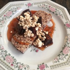 A delicious shriraz viognier from Yarra Yarra is chosen by Guy and we are on to the beef cheek which comes out looking more like fillet steak. What the chefs have done is freeze dry the slowly cooked cheek to form a disk, rather than present in the usual rustic way. It works, but it does lose some of the magic in my humble opinion. The Congo potato is raved about, which is probably not what the chefs had in mind (when you compare to the cheek), but it is definitely a generous and enjoyable way to end the savoury courses.