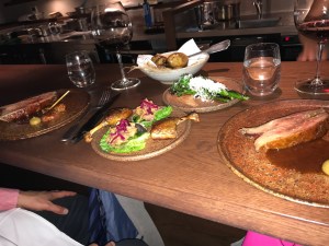 Next, the scorched salmon is meltingly good, and we are getting on a roll. By this stage we are on to our next wine. We have a terrific sommelier who has already poured us a Reserve Gosset Champagne which is a rare offering, and a first for us at a restaurant. It sets us on a path with this very expensive wines by the glass list. The Chardonnay by Salem & Co (Oregon) is exceptional with elegance and complexity from low/no irrigation. The Fiano from Campania is also a beautiful expression, despite the price tag.