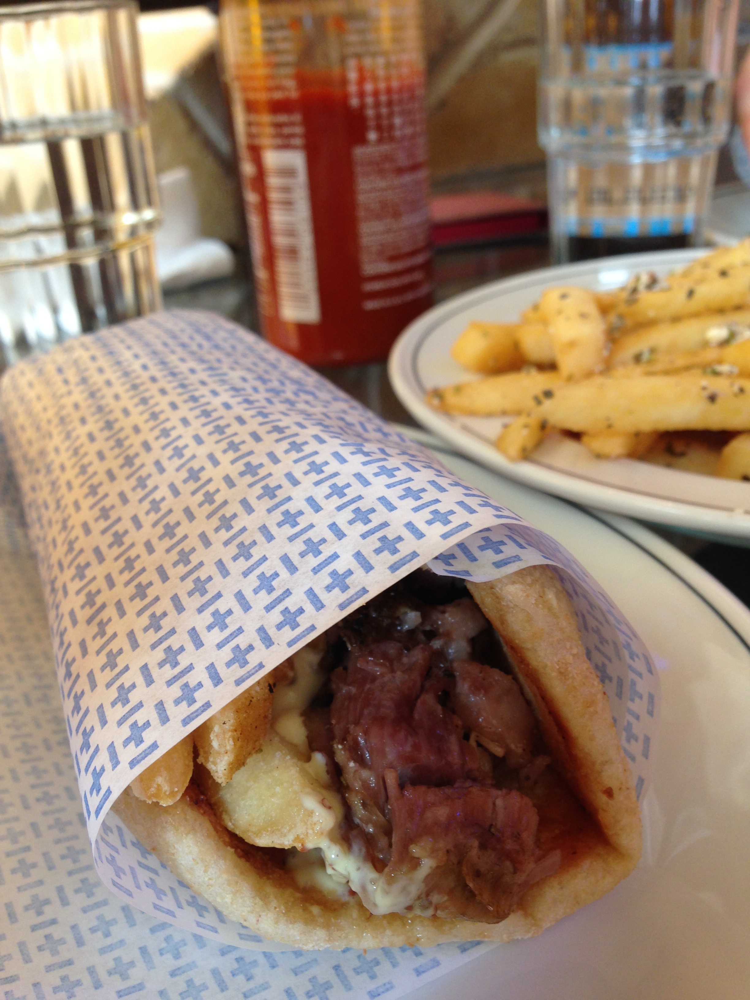 I have decided I like Mr Papadopolous better than Nonna Maria’s souva, the lamb in my experience deeper in flavour than the chicken, but I’ll be continuing to compare. The well seasoned chips protruding from the pita on top of the lamb or chicken reminds me of my time in Athens and Santorini, and the cooked onion and parsley are enough to sustain me for lunch or a lighter dinner. The pita itself is excellent most times.