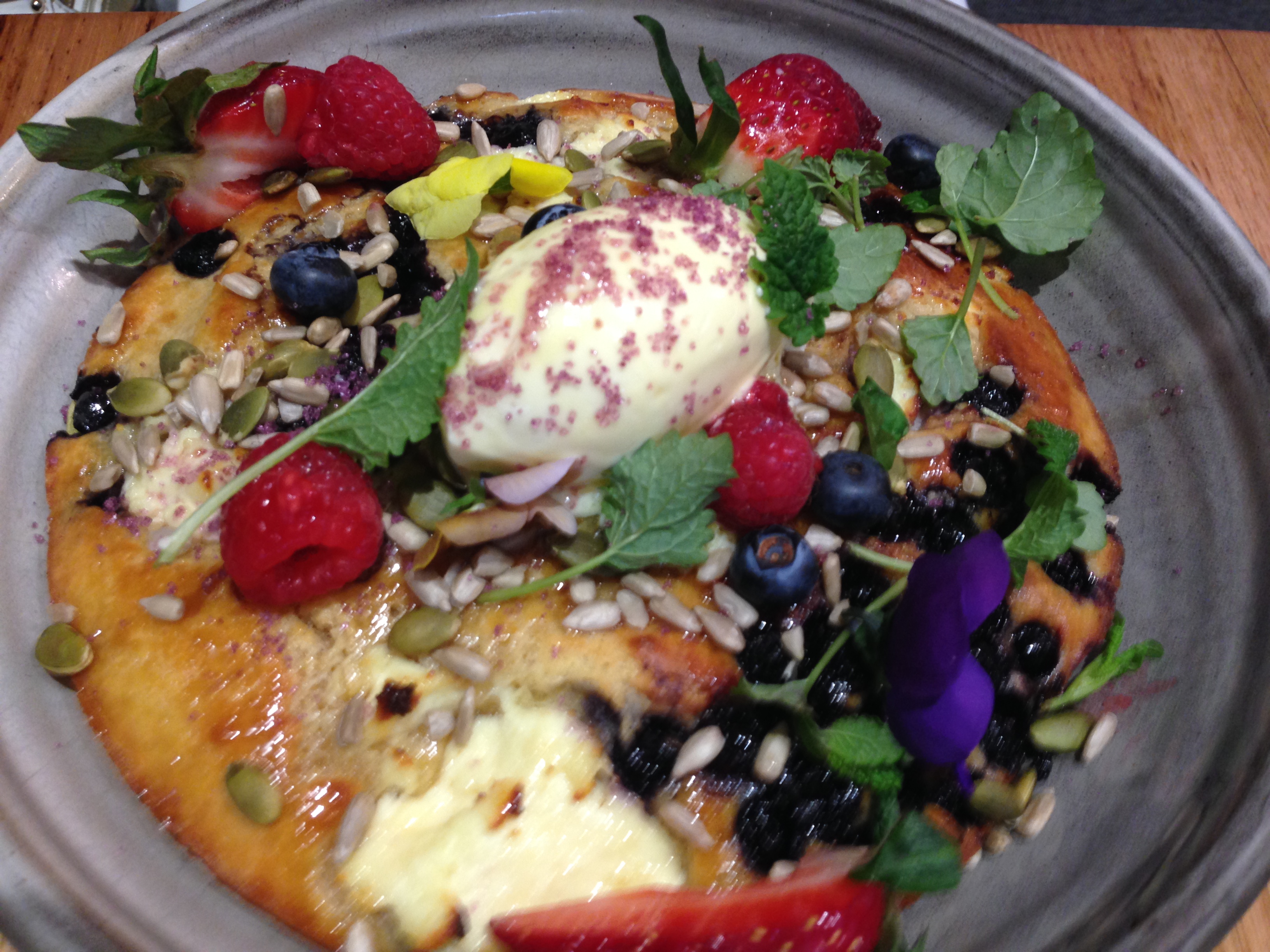 The Square One coffee being used is roasted only a couple of streets away from where I live, and it is excellent, with two single origins from Kenya being offered today. I try them both, but the decision on what to eat is not as straightforward. We came for breakfast but it is well and truly lunchtime, and we have been up and about shopping for a couple of hours, building up an appetite in the process.
