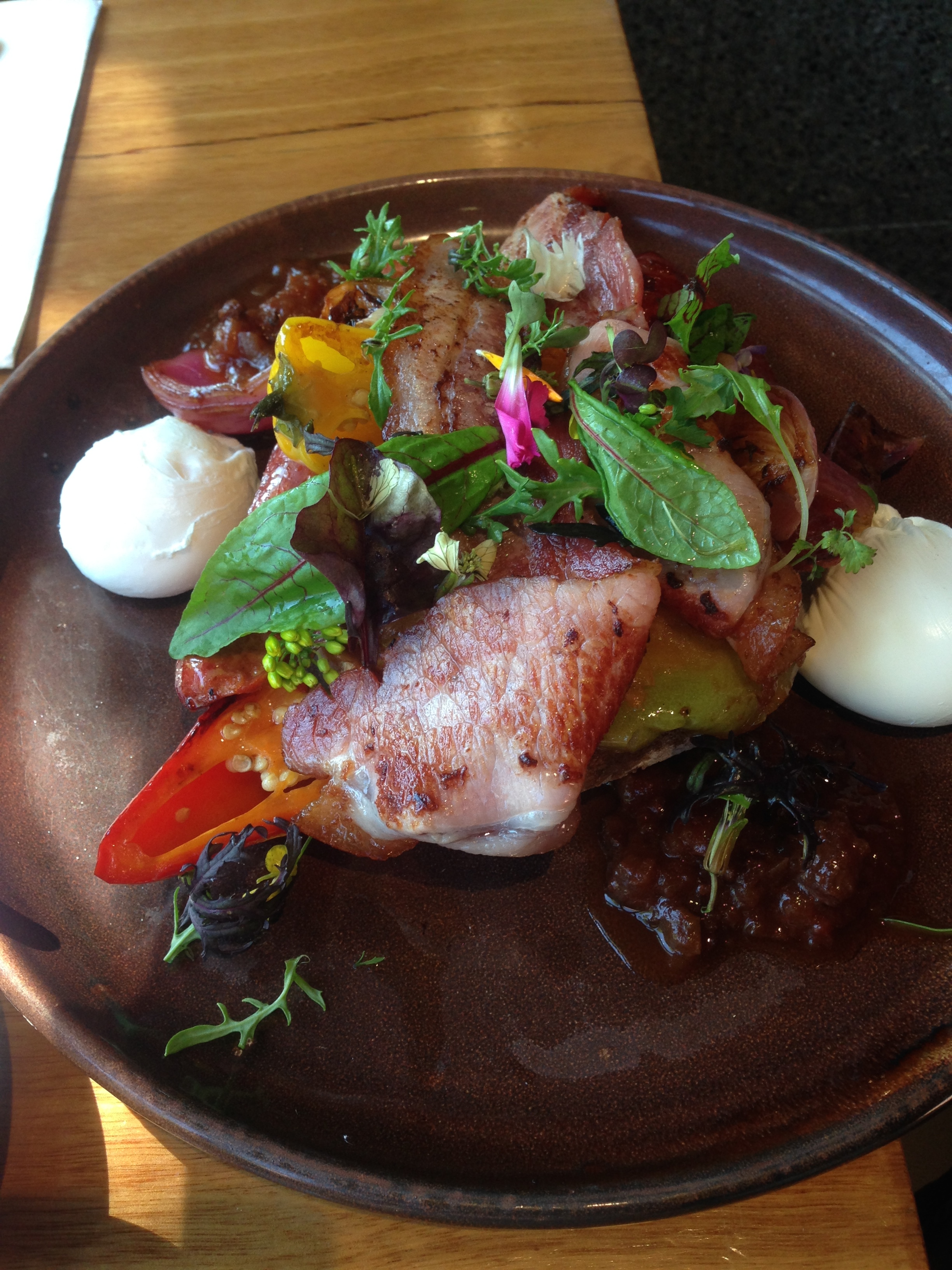 Catherine narrowed her choice down to either the mushroom and polenta dish, or the slow cooked beans. Unfortunately she chose the latter which needs some work. Under a generous serve of perfectly poached eggs sits too few beans, dominated by the green sauce which lacks seasoning. The main question mark is what the slow cooked beans have been cooked in, because on their own they lack flavour too. Neither of the star ingredients have impact.