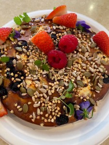 With Catherine’s fresh mint tea, and my coffee ordered, dessert arrived and whilst more petite than our final savoury course, the torte with a filling of rhubarb, strawberries, and fig leaf ice cream, was a tremendous finish to an utterly superb meal. We had nowhere to be except Glasshouse next door to relax for the evening (and enjoy our charcuterie platter we ordered too; post bath!) A long, leisurely, luxurious lunch left us with lasting memories, plans to come back with a group (perhaps in the private room for twelve), and a rather full belly. Monday has never been so good.