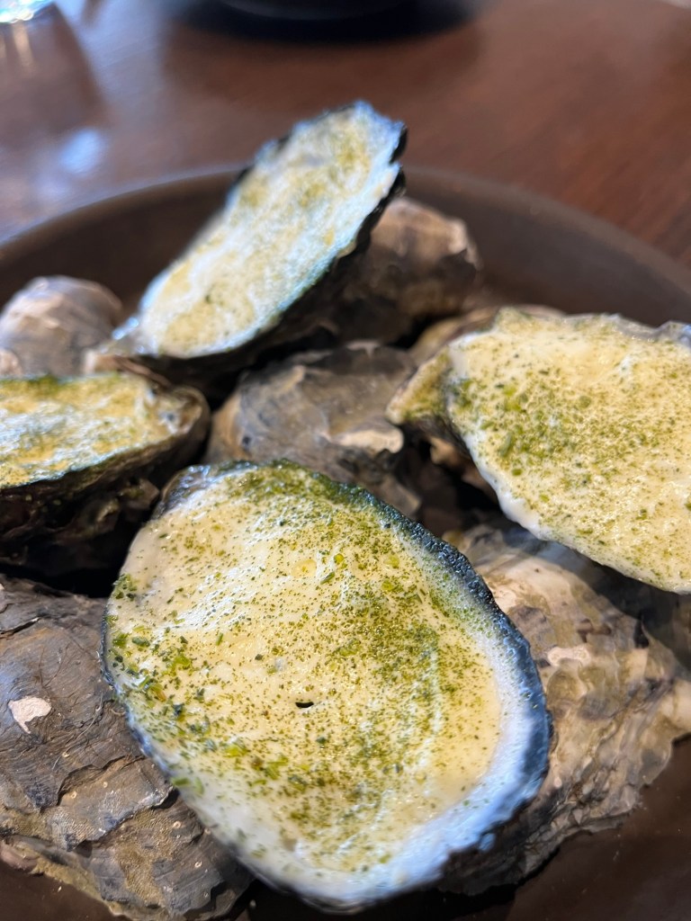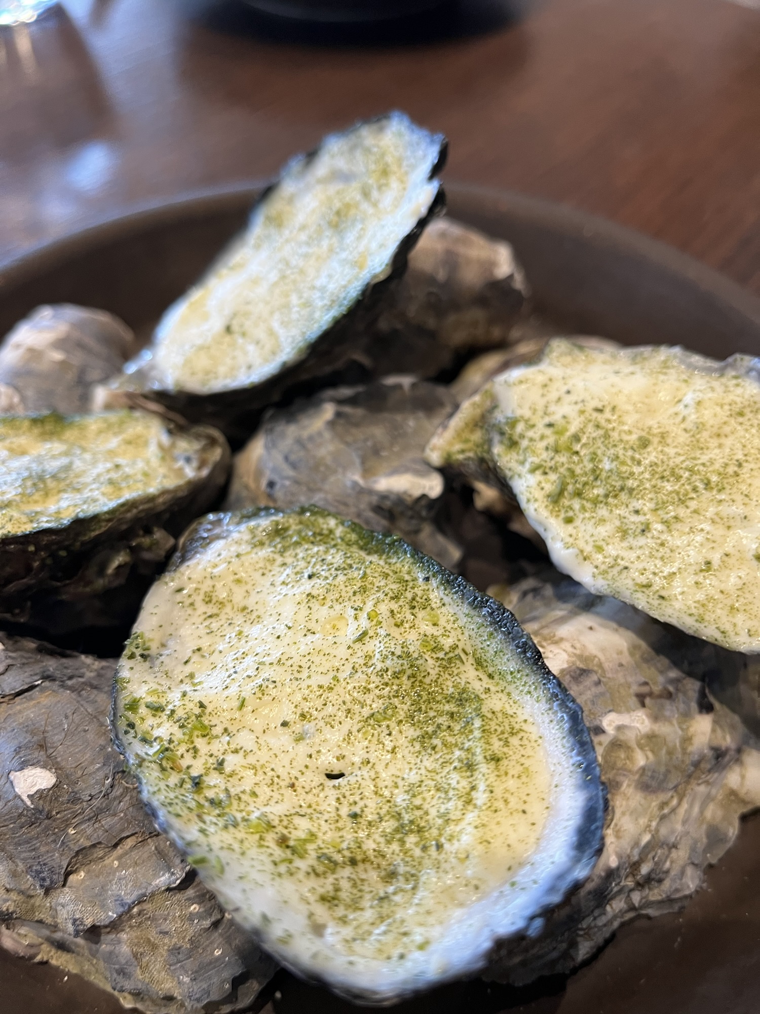 Knowing our dining window is only two hours, we look to simultaneously catch up with our guests, but also order our drinks hastily, and hope that our snacks start coming out. This is a five course tasting menu with numerous components, and some need to be amended for Catherine’s gluten intolerance. We speak to Riccardo before our guests arrive to make sure the kitchen saw our note on booking, but are not explained what menu changes will be necessary. I notice early on some confusion on this, with the oyster covered in a delicious dessert lime foam, which is initially sent back to the kitchen, before being cleared again for take off to our table unchanged.