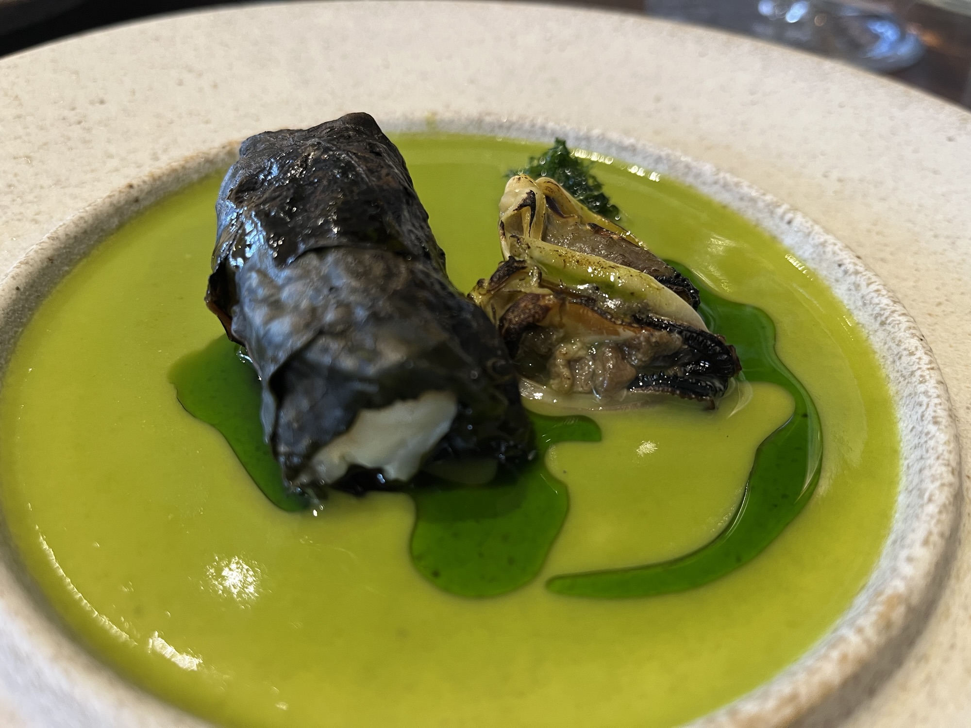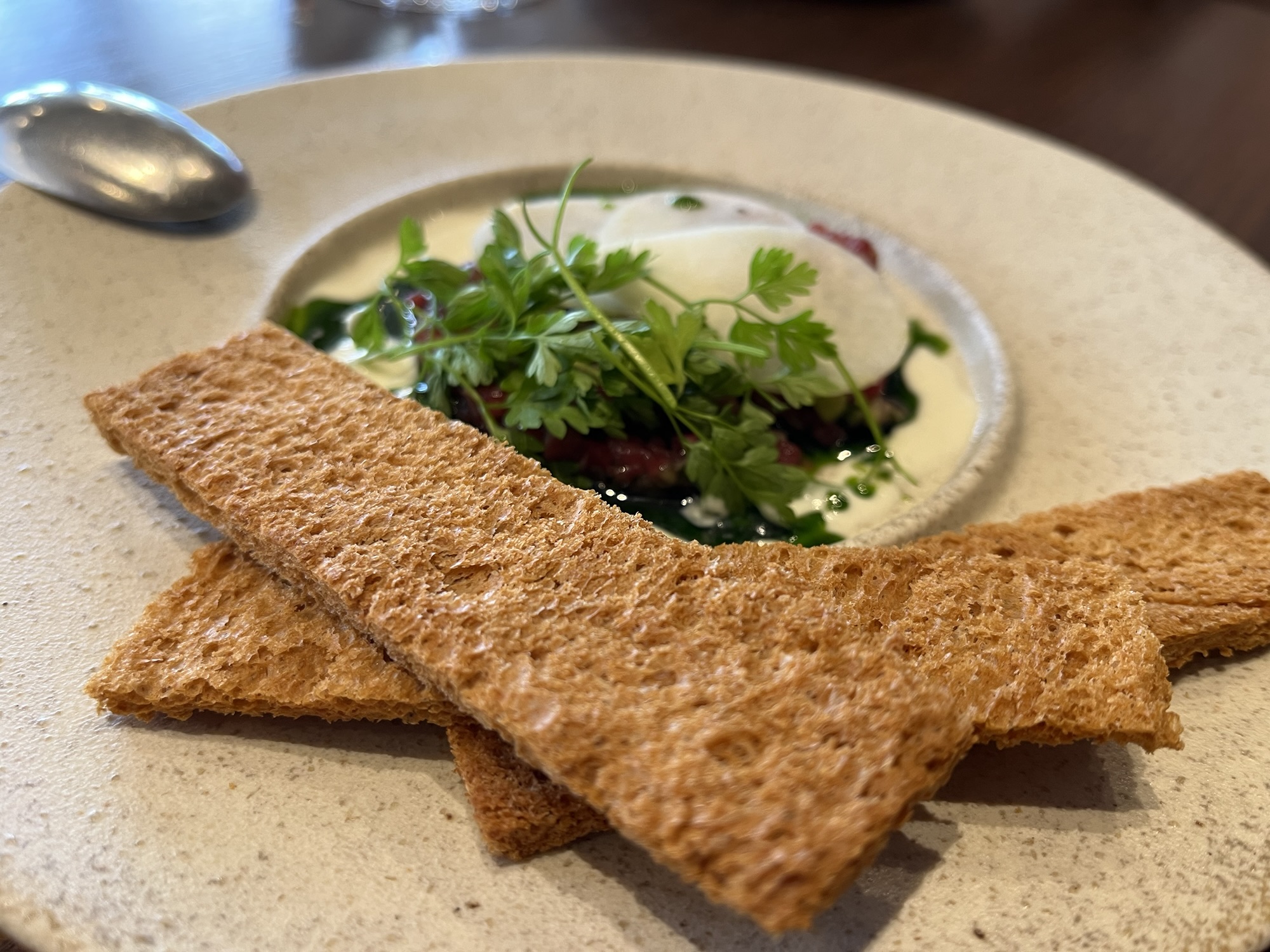 Having let Riccardo know that our friends were 15-20 minutes late, the best practice would have been to bring snacks to the table which is the first course, quickly after they arrived, but I know kitchens don’t work that way and there is an order to service. At a restaurant with a set menu it is easier though.