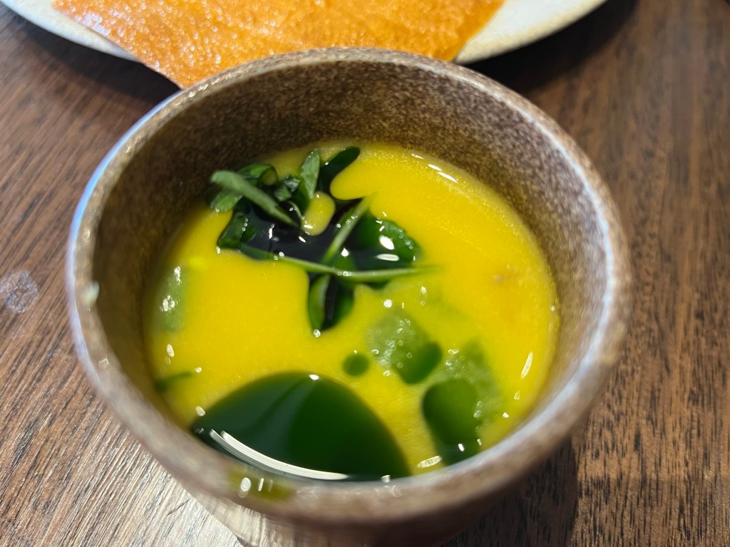 There is an early pace about things, but certainly not a rush, and it feels like we will not be catching up with the first course snacks taking quite some time to deliver to the table. As I’ve mentioned, starting proceedings late is our fault, but it cannot be that rare. The concern sets in when there are lengthy gaps between the chicken chawanmushi course, and the Moreton Bay bug course, and yet again to the final savoury course of impressively handled duck.